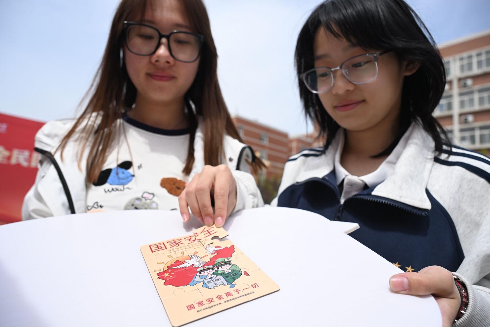 当天上午,一场别开生面的总体国家安全观主题思政课在该校拉开帷幕。思政课老师以生动的案例、详实的数据,深入浅出地讲解了总体国家安全观的内涵。同时,在该校国家安全教育馆内,讲解员从总体国家安全观的思想脉络讲起,阐述了总体国家安全观提出的背景和重要意义。在该校书香广场,识图、问答、拼图等趣味活动也同步开展,同学们仔细观察展示的图片,快速辨别其中涉及的国家安全领域,不少同学还能结合所学知识,阐述背后的安全要点;问答环节,同学们围绕国家安全法律法规、安全防范知识等内容展开激烈抢答,展现出扎实的知识储备;拼图活动中,大家分组协作,齐心协力完成一幅幅国家安全主题拼图,在合作中加深对国家安全的理解。“以前觉得国家安全很抽象,参加这次活动后,我对它有了更直观、更全面的认识。国家安全不仅关系到国家的稳定和发展,也关系到我们每个人的生活。”该校学生张妍洁说。