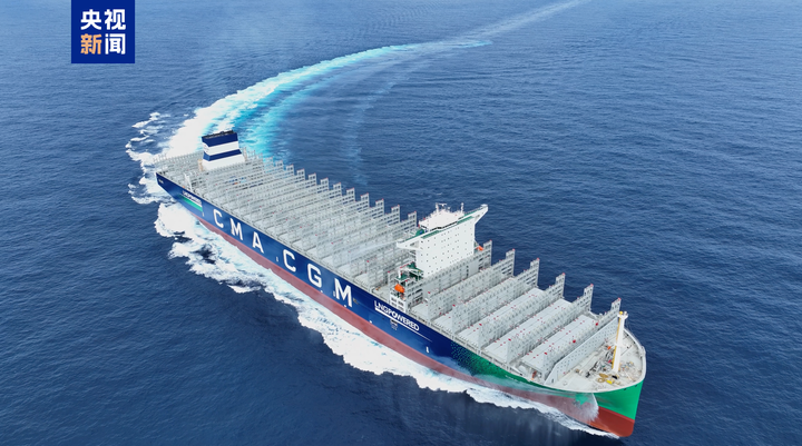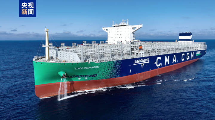 15日交付的全球最大双燃料动力集装箱船一次可承载22万吨货物,24000个左右的集装箱堆叠高度相当于25层楼,被称为海上“超级带货王”。同时,这型船还采用了绿色燃料——液化天然气作为动力,可为船舶提供单个航次近2万海里的超远续航。