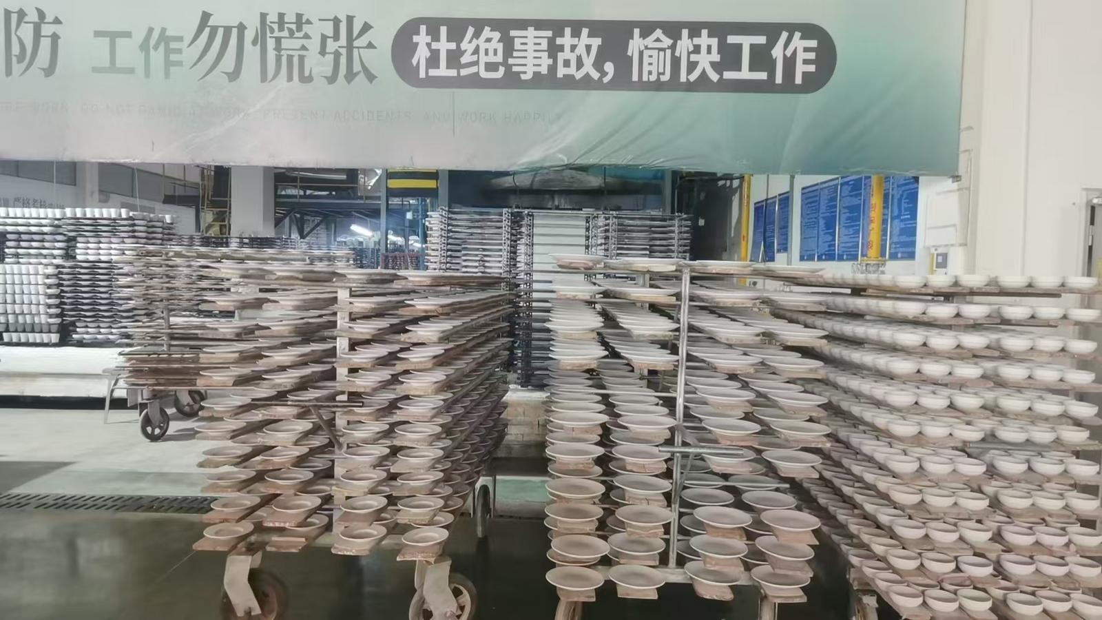 “我们的技术全部是自有知识产权,靠技术吃饭,这是最骄傲的。”他说,一个瓷碗瓷碟,从培植泥土到出品,要经过模型、原料、成型、上釉、烧成、贴花等64道工艺。陶瓷土的来源,主要是山东烟台本土的,但需要加入山西省产高岭土等矿物质,因为镁质强化瓷的主要原料包括滑石、高岭土、石英、长石等。镁质强化瓷的配方中含有较高的镁含量,通过引入镁元素,掺杂其他矿物成分,能增强物理性能。这些矿物质原料耐高温,通常在1340摄氏度以上,能确保瓷器的高质量和耐用性,尤其抗冲击性,破损率大大降低,有效降低了消费者成本。
