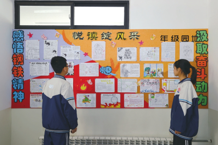 经纬纺织机械厂于1954年在晋中榆次建成投产,随后建起了生活区、学校、医院等,经纬中学就是于1957年创办的一所完全中学。走进校园,馥郁书香扑面而来。楼道内由各个班级学生的读书笔记组成的“阅读册”、教室墙壁上张贴的名人读书名言、走廊边设置的阅读手抄报展示栏,如同知识的经纬线,交织成文化的根系与成长的阶梯。