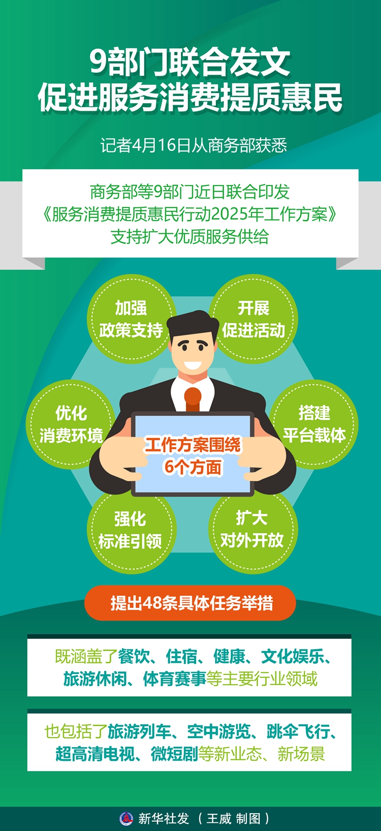 山西日报客户端综合报道 记者16日从商务部获悉,商务部等9部门近日联合印发《服务消费提质惠民行动2025年工作方案》,支持扩大优质服务供给。