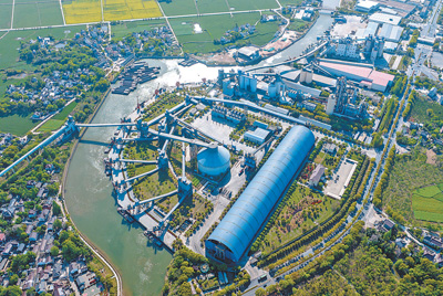 该项目由水运码头、中转仓储、纯电动熟料输送带组成,将水泥生产企业的熟料通过35.5公里长的带式输送机运输到码头,再通过水路运往长三角各地。项目从运输、仓储、装卸到泊船采用全电模式,有效控制了污染和噪声,实现了减排环保。