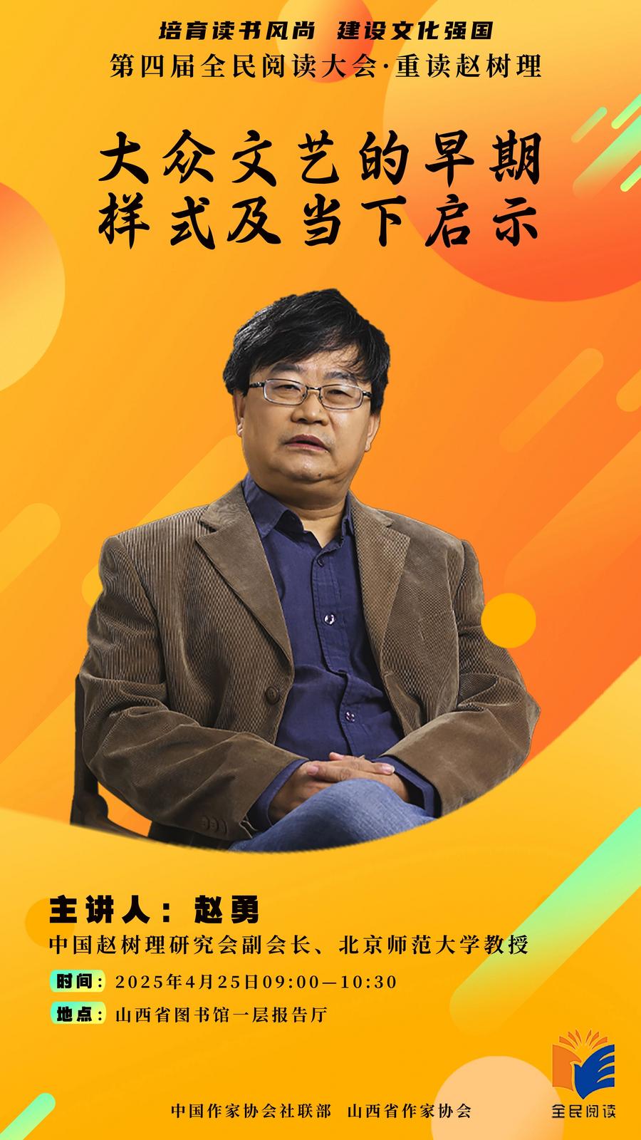 4月25日9:00,中国赵树理研究会副会长、北京师范大学教授赵勇将带来《大众文艺的早期样式及当下启示》,深度剖析大众文艺早期形态,探讨其对当下文艺创作的深远影响。当日15:00,中国赵树理研究会副会长、太原师范学院教授傅书华以《乡土中国之子》为题,带领读者走进赵树理与乡土中国的深刻联结,解读其作品中蕴藏的乡土情怀与时代印记。