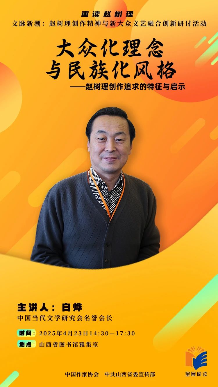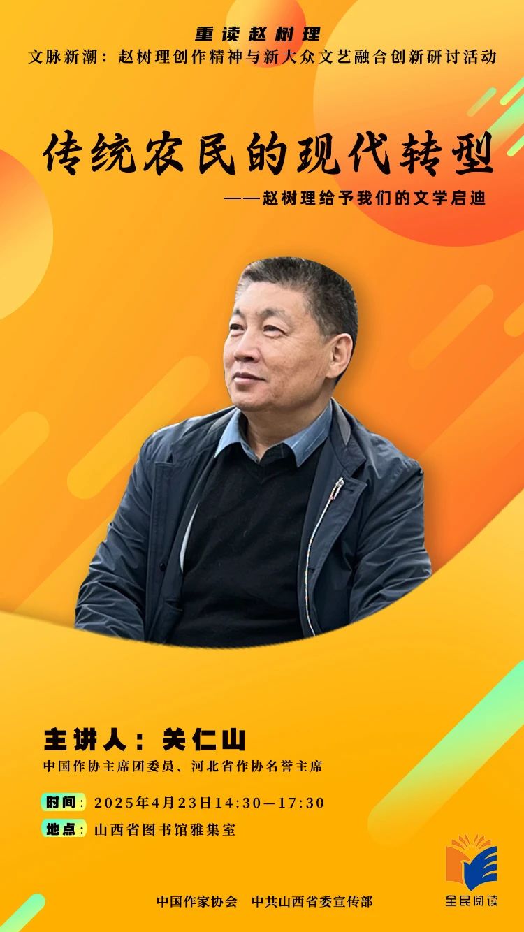 山西日报新媒体记者张馨报道 读者交流会、系列文学讲座、人民艺术家赵树理展……第四届全民阅读大会将于4月23日至25日在山西太原举办,大会期间,围绕“重读赵树理”的一系列精彩活动将陆续开展。全国著名作家、知名学者将齐聚一堂,以当代视角“重读赵树理”。