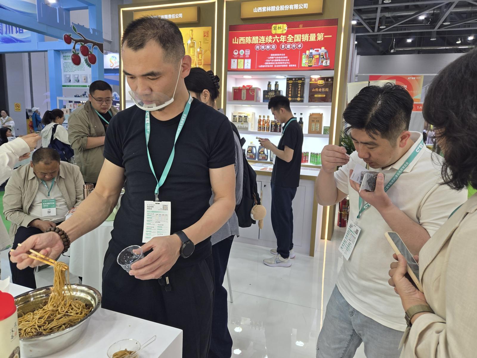 山西雁门清高轻养科技股份有限公司此次带来了100%纯荞麦面、黑苦荞陈醋、五色糙米、藜麦石头饼等产品,一时间收到广大采购商和私域优选博主的喜爱。销售负责人张瑾丽表示,公司连续两次参加食品电商博览会,受益颇多。一来如今的消费者都普遍注重养生轻食,荞麦产品很适合糖友胖友饮食,所以市场不错,上一届展会便签约十来家合作商。二来信息时代,企业发展需要电商全渠道推广,这样的专业展会汇聚了来自产业链各个环节的杰出企业、明星产品及前沿解决方案,有利于共同推动行业发展。