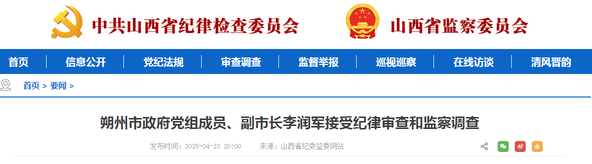 山西日报客户端综合报道 朔州市政府党组成员、副市长李润军涉嫌严重违纪违法,目前正接受省纪委监委纪律审查和监察调查。