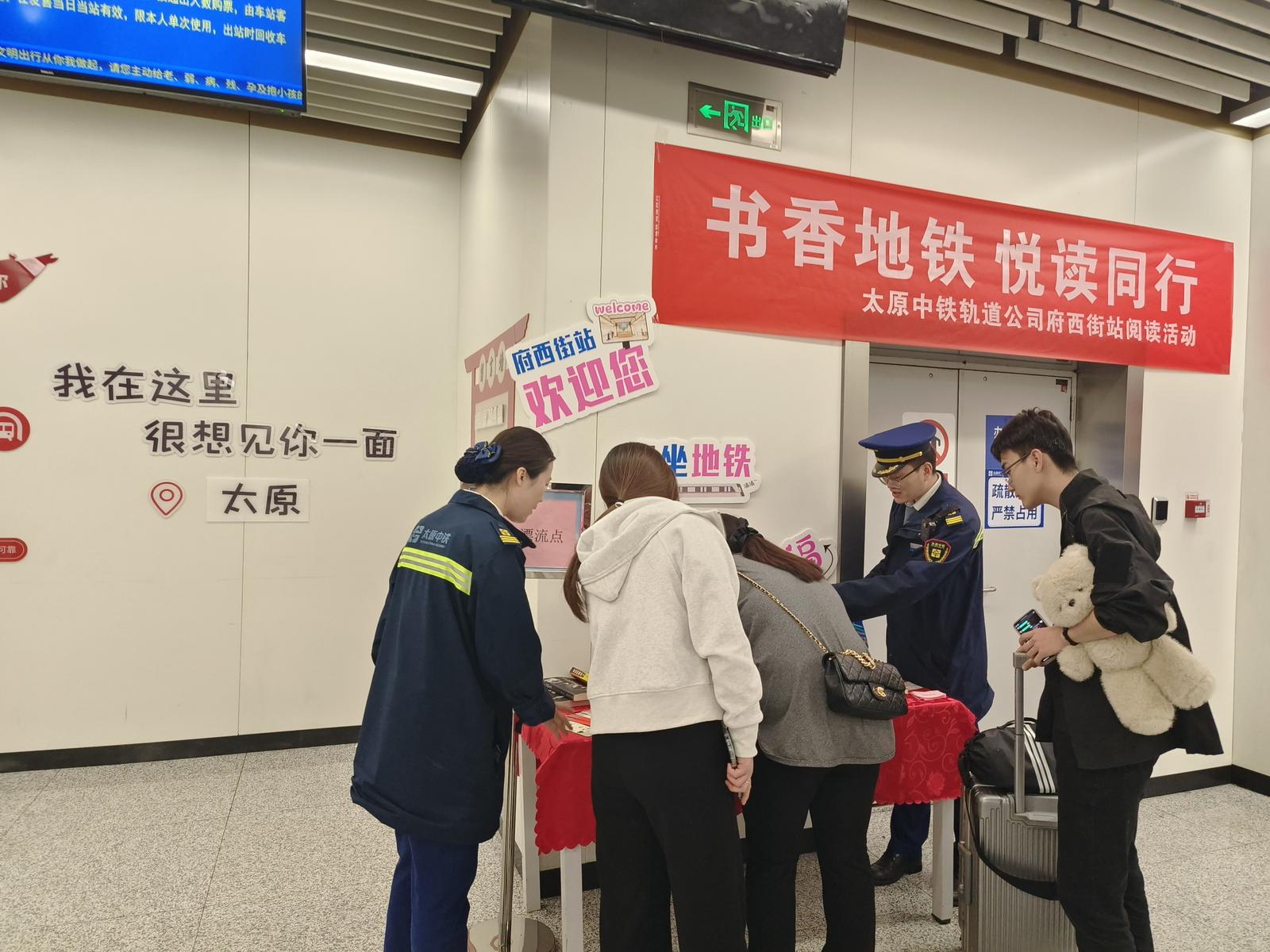 山西日报新媒体记者张宝明 通讯员籍艺报道 日前,中铁电气化局太原中铁轨道公司府西街站在C口通道文化墙处举办了一场别开生面的读书系列活动,大力推动全民阅读,营造浓郁的书香氛围。活动以书为媒,吸引了众多市民乘客驻足参与,现场书香四溢,互动热烈,成为地铁站内一道亮丽的文化风景线。