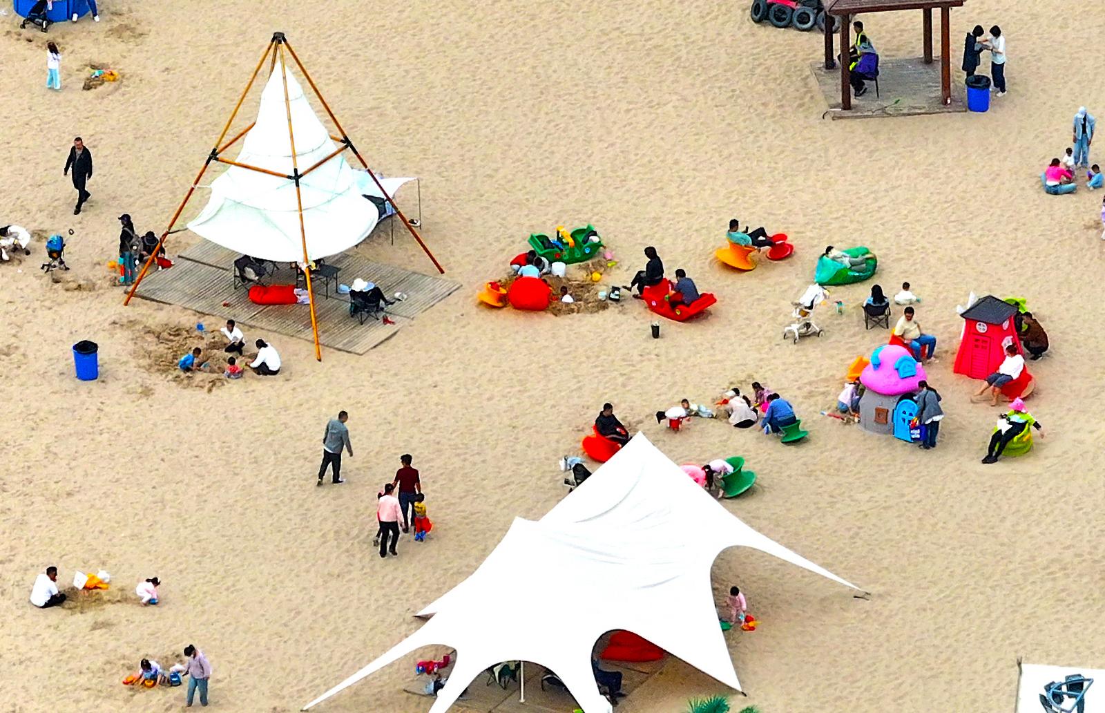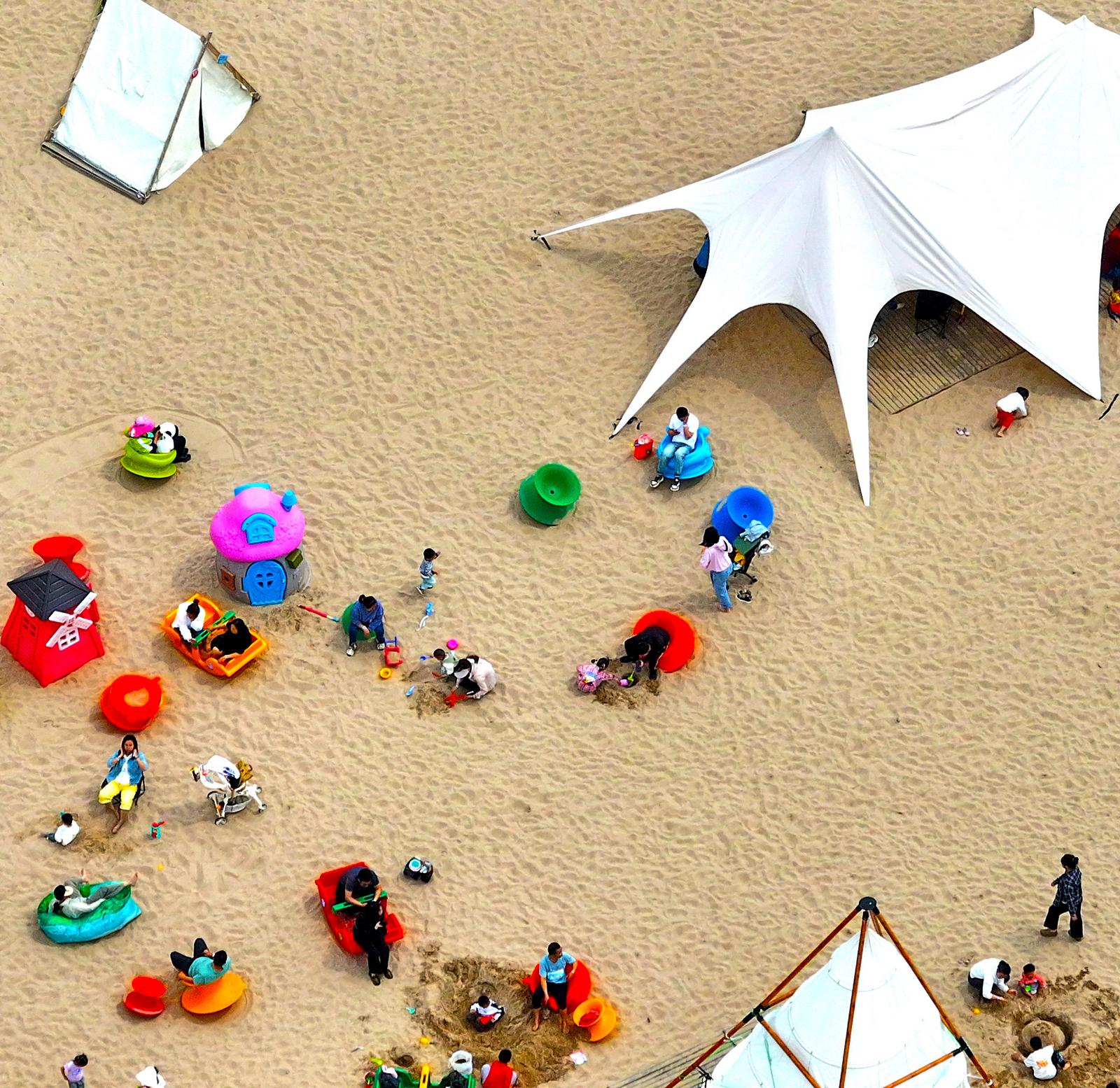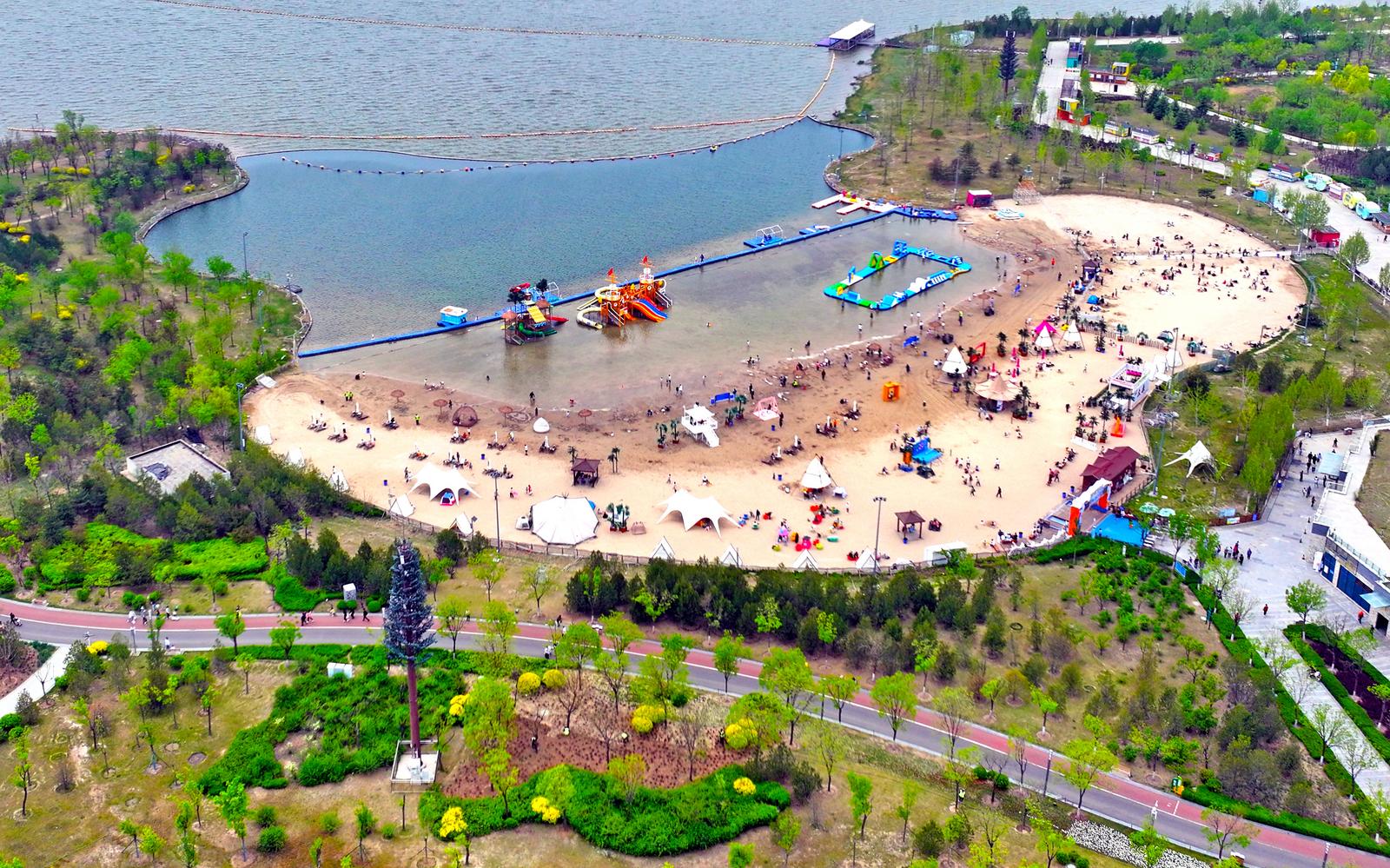 4月26日,太原市晋阳湖沙滩浴场成为市民休闲娱乐的热门打卡地。走进沙滩浴场,金黄的沙滩在阳光下闪耀,与清澈的湖水相映成趣。孩子们在沙滩上嬉笑玩耍,用小铲子和水桶堆砌着心中的城堡,家长们则在一旁的遮阳伞下惬意休憩,时不时拿起手机记录孩子的欢乐瞬间。水上娱乐设施区域,彩色的滑梯、水上浮桥等吸引着年轻人跃跃欲试,欢笑声、水花声交织在一起。