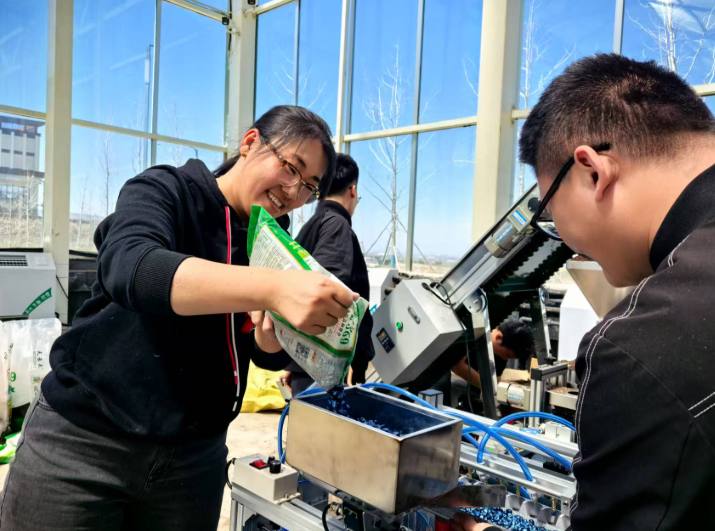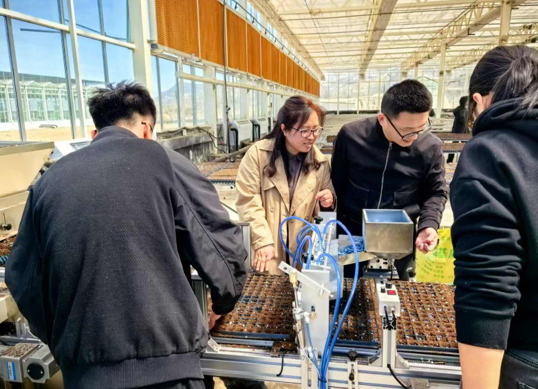 现场参与播种的师生查看了4月26日栽种的苗子,欣喜的发现,成活率非常高,接近100%。接下来,还要往地里布置所有的物联网设备。这些设备可以将所有数据真实地传回来,包括环境数据,作物生长数据,病虫害数据,叶绿素转化数据、土壤的各种数据,给下一步的决策提供依据。