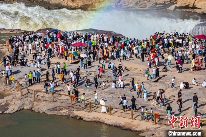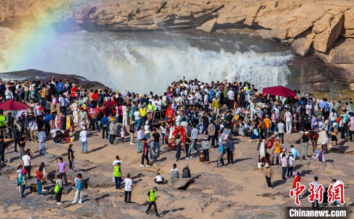 图为黄河壶口瀑布美景吸引了众多游客。兰华 摄