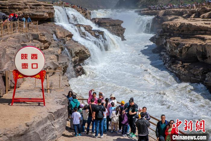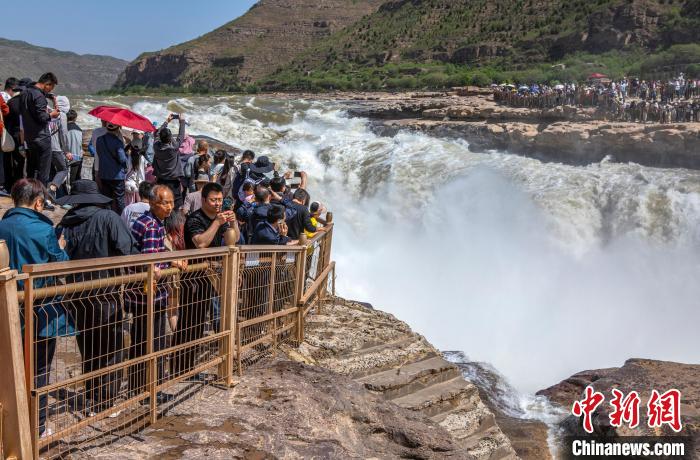 山西日报客户端综合报道 “五一”假期,黄河壶口瀑布水流落差加大,声如奔雷,澎湃咆哮,溅起数米高的飞雾,呈现出清瀑景观,气势雄伟壮观,吸引了众多游客拍照留念。