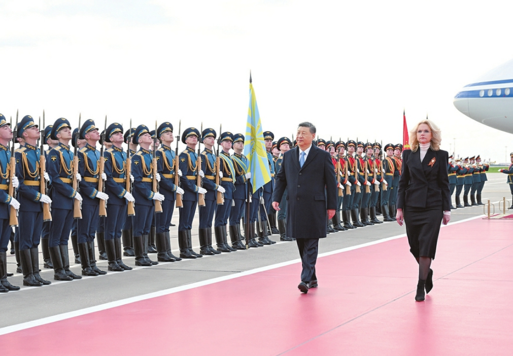 当地时间5月7日晚,国家主席习近平乘专机抵达莫斯科,应俄罗斯总统普京邀请,对俄罗斯进行国事访问并出席纪念苏联伟大卫国战争胜利80周年庆典。