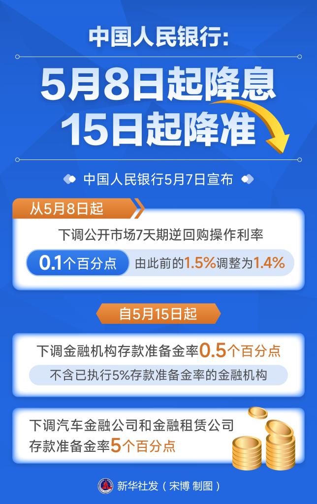 作为总量政策工具,降准降息的预期不断升温,如今“靴子落地”:自5月15日起,下调金融机构存款准备金率0.5个百分点,预计将向市场提供长期流动性约1万亿元;从5月8日起,下调政策利率0.1个百分点,预计将带动贷款市场报价利率(LPR)同步下行约0.1个百分点。