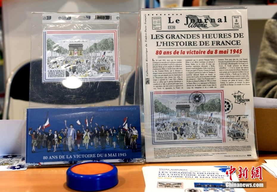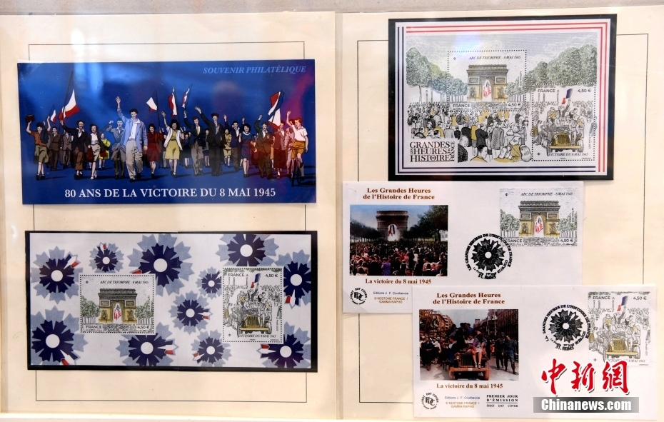 山西日报客户端综合报道 当地时间5月7日,法国发行纪念二战胜利80周年邮票。法国东北部城市兰斯是这套纪念邮票的首发地,图为兰斯中央邮局展示的邮票图稿和首日封。