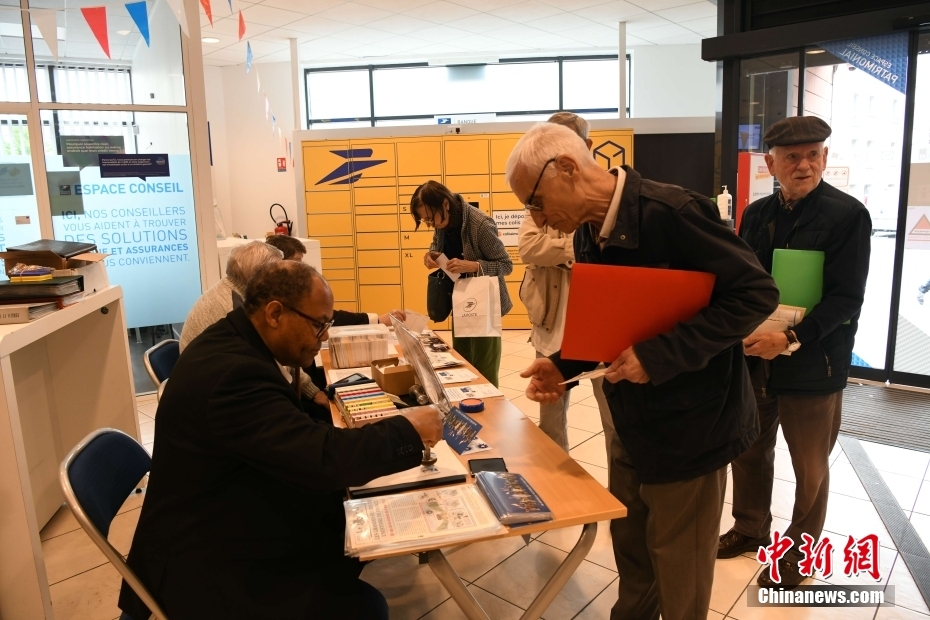 兰斯中央邮局工作人员为邮票加盖首日戳。中新社记者 李洋 摄