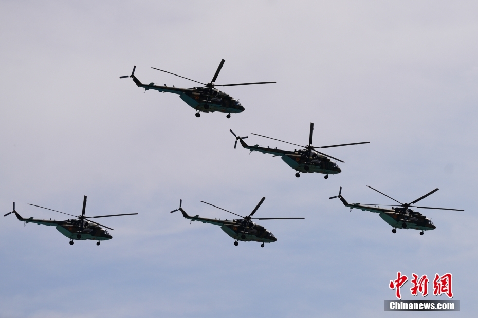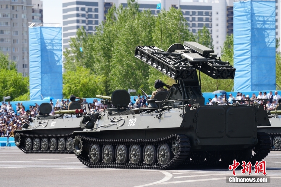 当地时间5月7日,哈萨克斯坦在首都阿斯塔纳举行盛大阅兵式,纪念世界反法西斯战争胜利80周年,并庆祝祖国保卫者日。当天共有4000多名哈官兵、200多件武器装备及66架军用飞机亮相阅兵式。中新社记者 单璐 摄