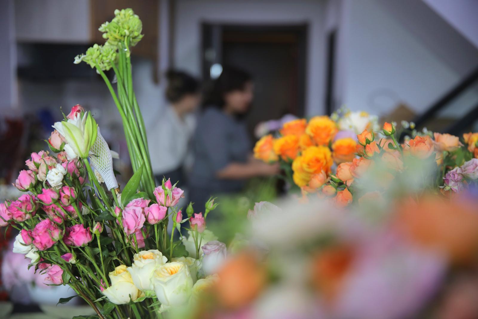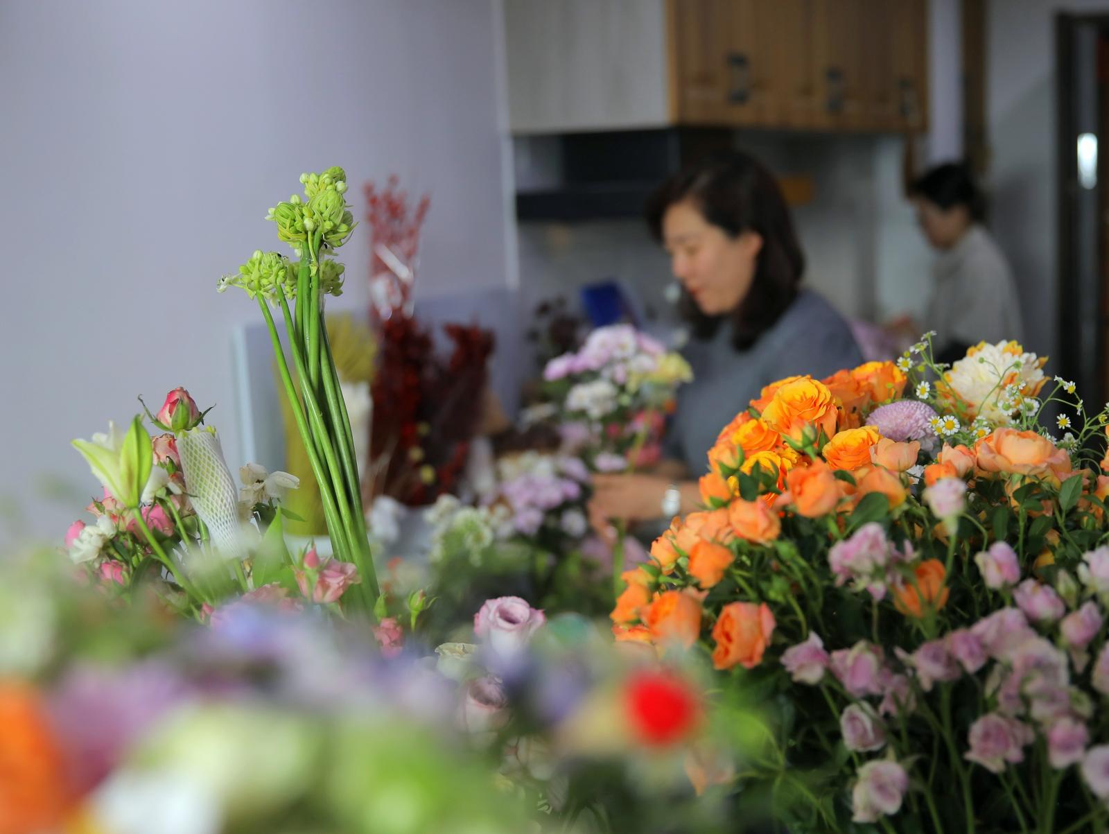 5月9日,太原市万柏林区一花艺工作室内康乃馨等各类鲜花有序摆放,工作人员正加班加点打包鲜花。随着母亲节的临近,省城“孝心经济”热度攀升。