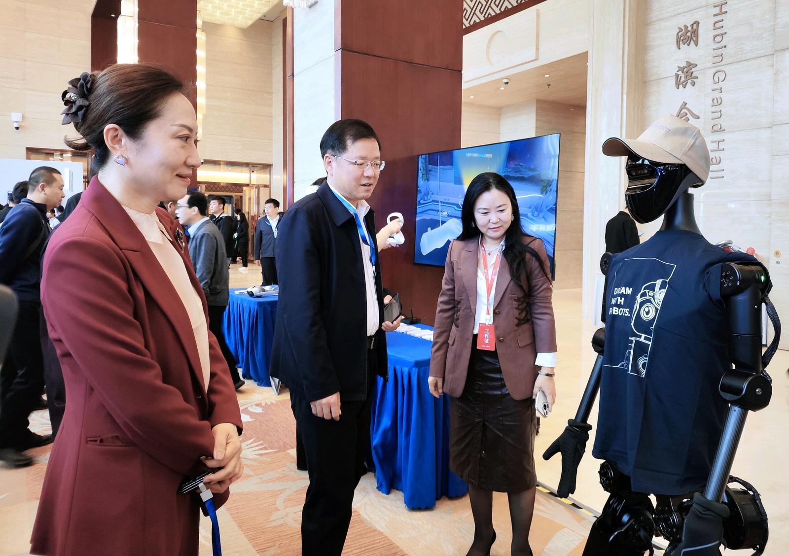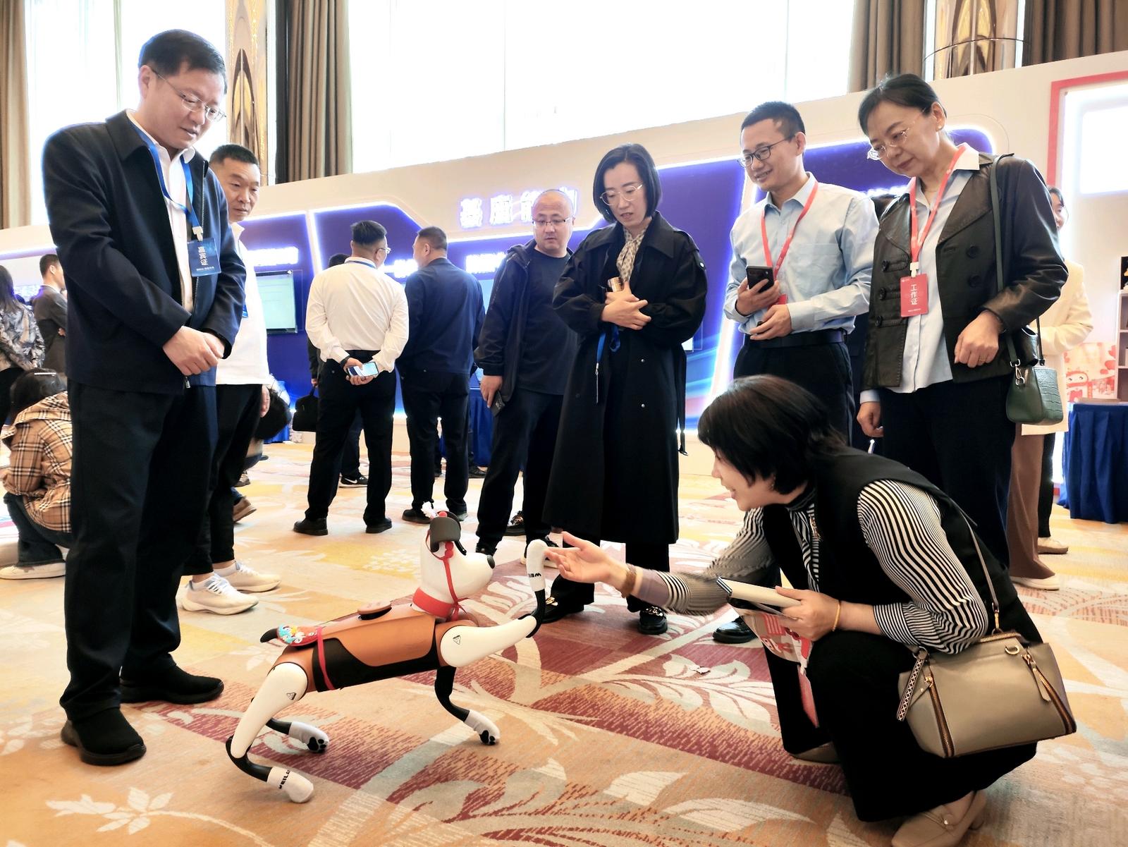 山西日报记者张琦摄影报道 5月9日上午,2025年山西联通科技创新暨人工智能合作伙伴大会在太原举行。项目展示中,具身智能机器人、围棋机器人、陪伴式机器狗、VR虚拟仿真实验室等科技产品亮相。