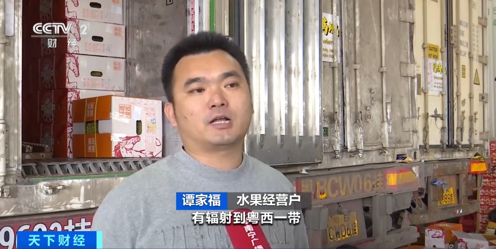 水果批发商 陈先生:拿了五六百件,南宁这里价钱比广州便宜一点,运输也方便,什么费用都省一点。