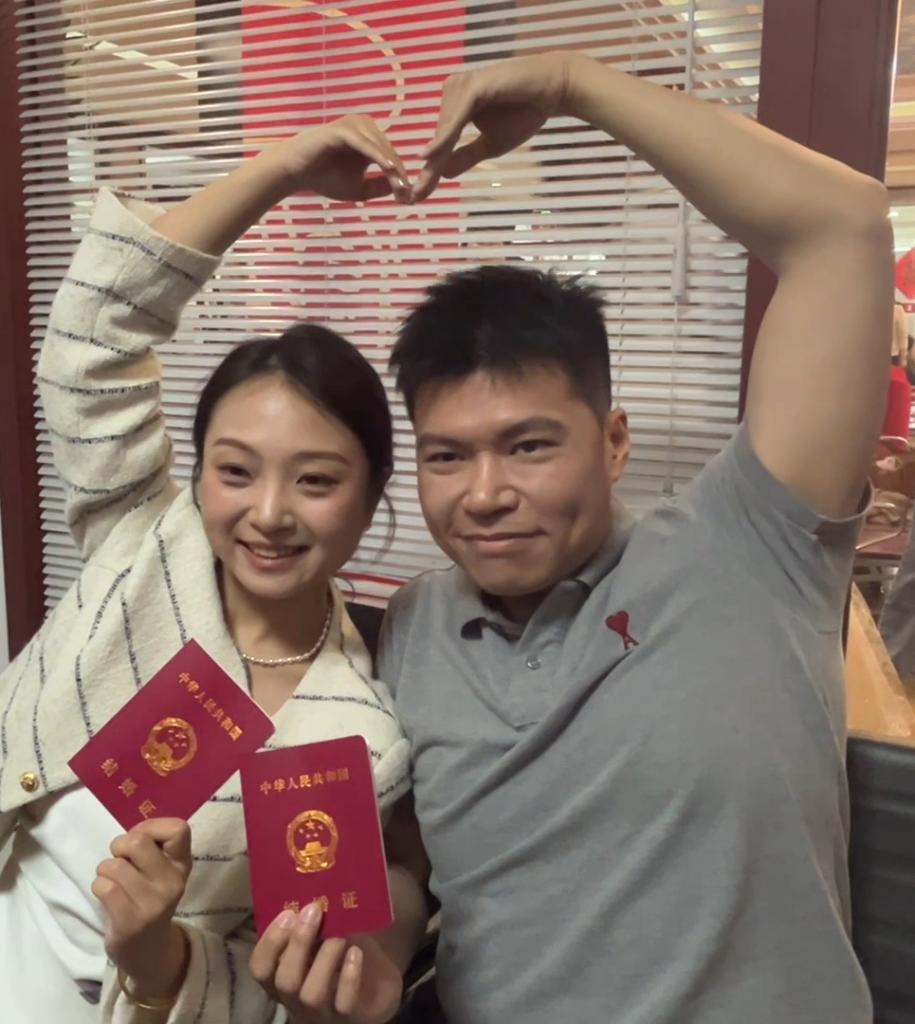 5月10日,工作、居住在北京的于先生和谷女士在北京市西城区婚姻登记处办理结婚登记(视频截图)。新华社记者 庞元元 摄