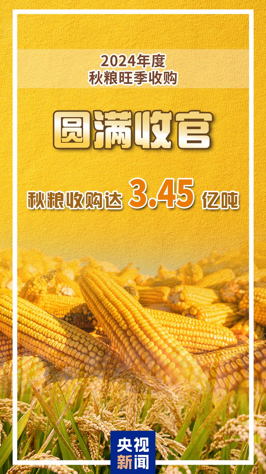 2024年度全国秋粮收购达3.45亿吨 旺季收购圆满收官