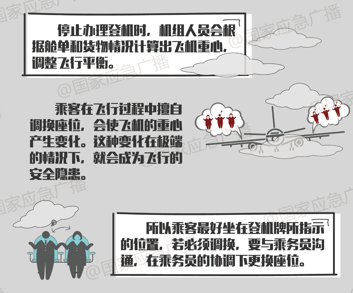 除了不得擅自打开应急舱门外,乘机时还有这些注意事项: