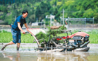 立夏过后,多地农民抢抓农时,陆续开展水稻插秧工作。