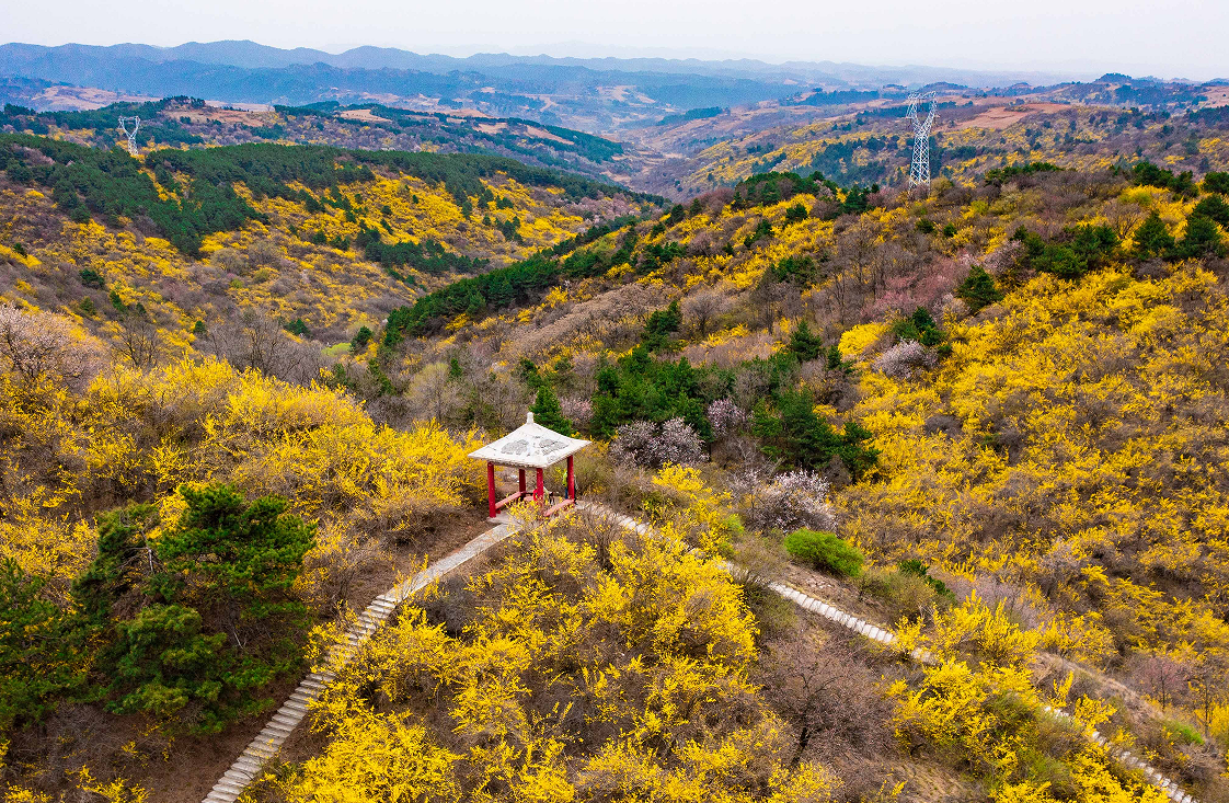 黄花岭森林公园,坐落于临汾安泽县良马镇,主峰海拔1355米。春日里,万亩野生连翘如金黄花海覆满山峦,成就“华夏连翘第一县”美誉。时至立夏之际,漫山流金溢彩,馥郁芬芳沁人心脾,尽显北国初夏的极致浪漫。临汾安泽欢迎您!