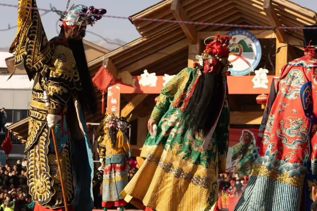 千年古镇遇“醉关公” 高跷演绎忠义传奇