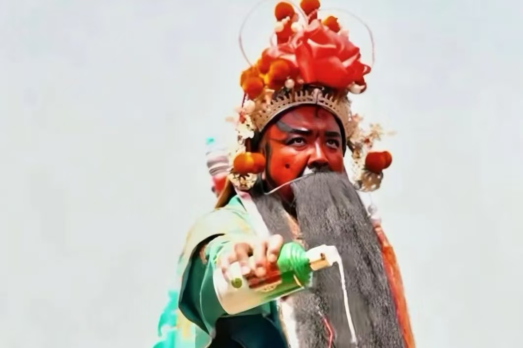 端午期间,大阳古镇景区最受瞩目的当属关帝庙前的“醉关公”表演。团队领衔者小林子,本名段国林,出身甘肃永登高跷世家,家族四代专演关公。他6岁习艺,16岁首扮关公,至今已逾二十载。