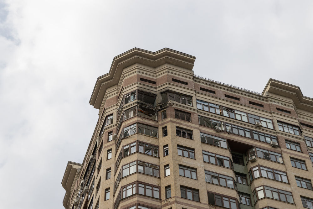 这是2025年3月11日在俄罗斯莫斯科州东南部拍摄的受损住宅楼。俄罗斯国防部11日在其社交媒体官方频道发布消息说,俄防空部队一夜之间击落337架乌克兰无人机。新华社记者白雪骐摄