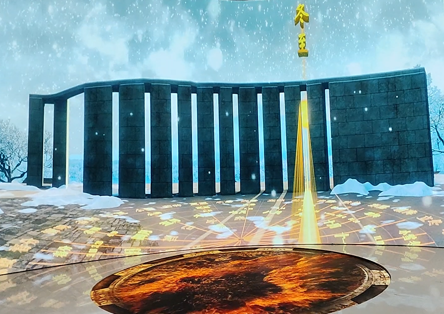 中华文明探源工程“四大早期都邑性遗址”之一陶寺遗址中最具代表性建筑——古观象台模拟影像,是目前已知最早的天文观测遗迹(约公元前2100年),比英国巨石阵观测台(约公元前1680年)还要早近500年。