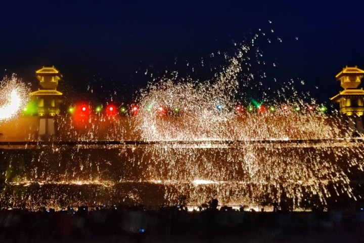 ▲大阳古镇打铁花现场