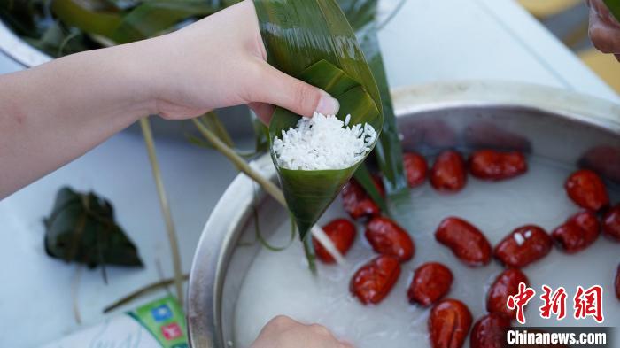 活动现场,游客们一起动手制作粽子。山西省文化和旅游厅供图