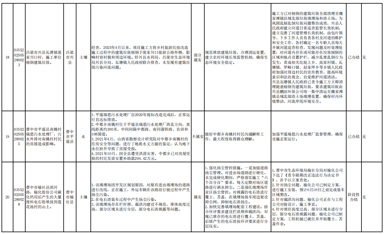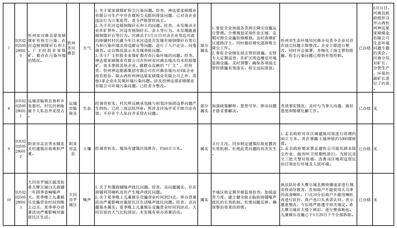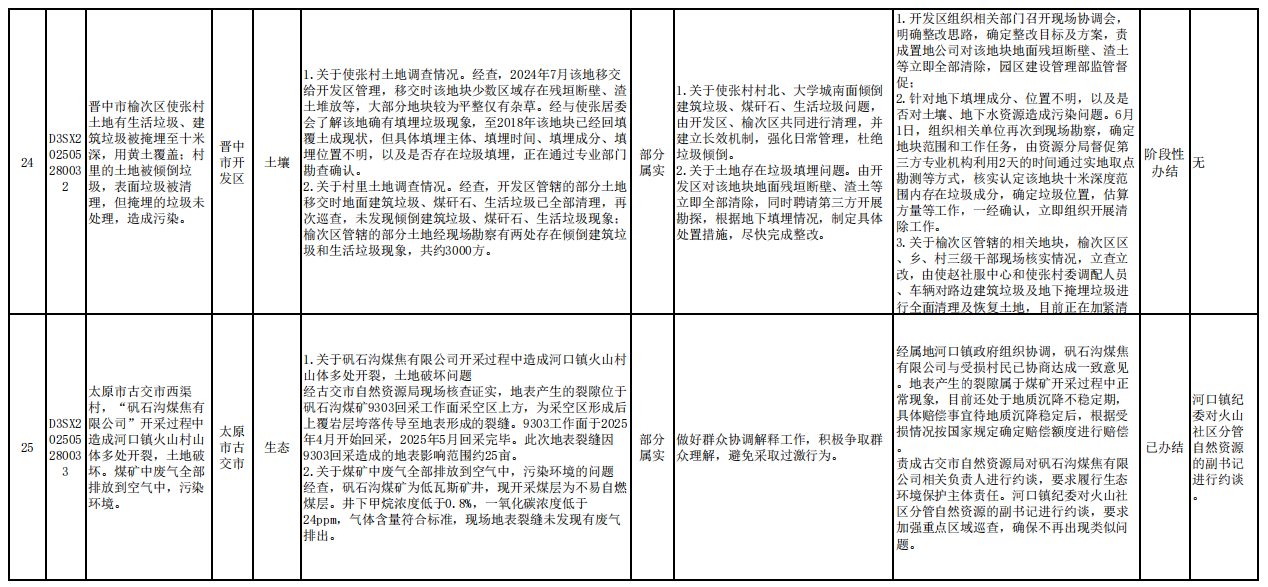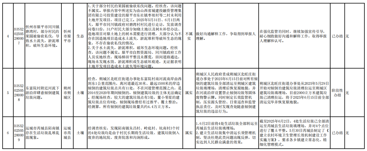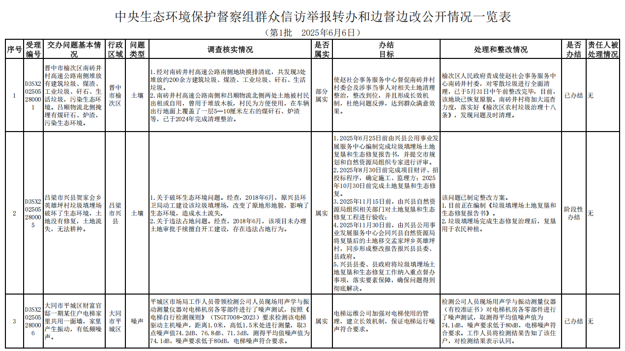 截至6月6日,中央第一生态环境保护督察组向我省交办的第一批群众信访举报件31件,各责任单位均按要求上报调查处理情况。其中,已办结19件,阶段性办结11件,正在办理1件,按照有关规定予以公开。