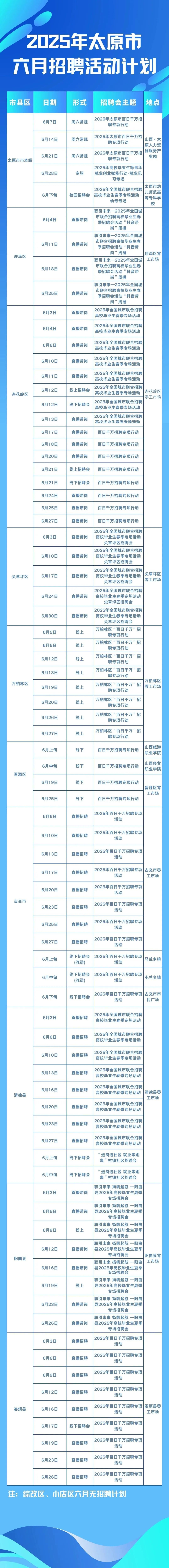 太原市将于6月7日、14日、21日,在山西太原人力资源服务产业园连续举办三场专场招聘,重点服务高校毕业生、农民工、登记失业人员、脱贫劳动力以及有招聘用工需求的各类用人单位。6月28日还将举办“2025年高校毕业生等青年就业创业赋能行动——就业见习专场”,为高校毕业生就业见习提供精准对接平台。