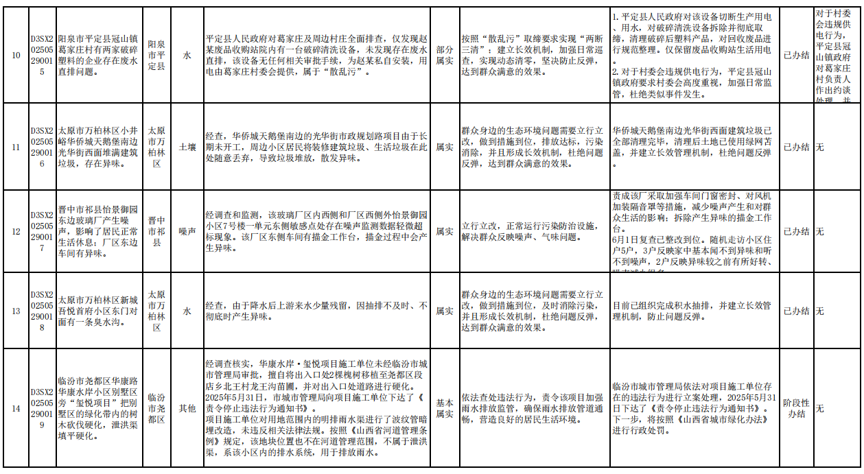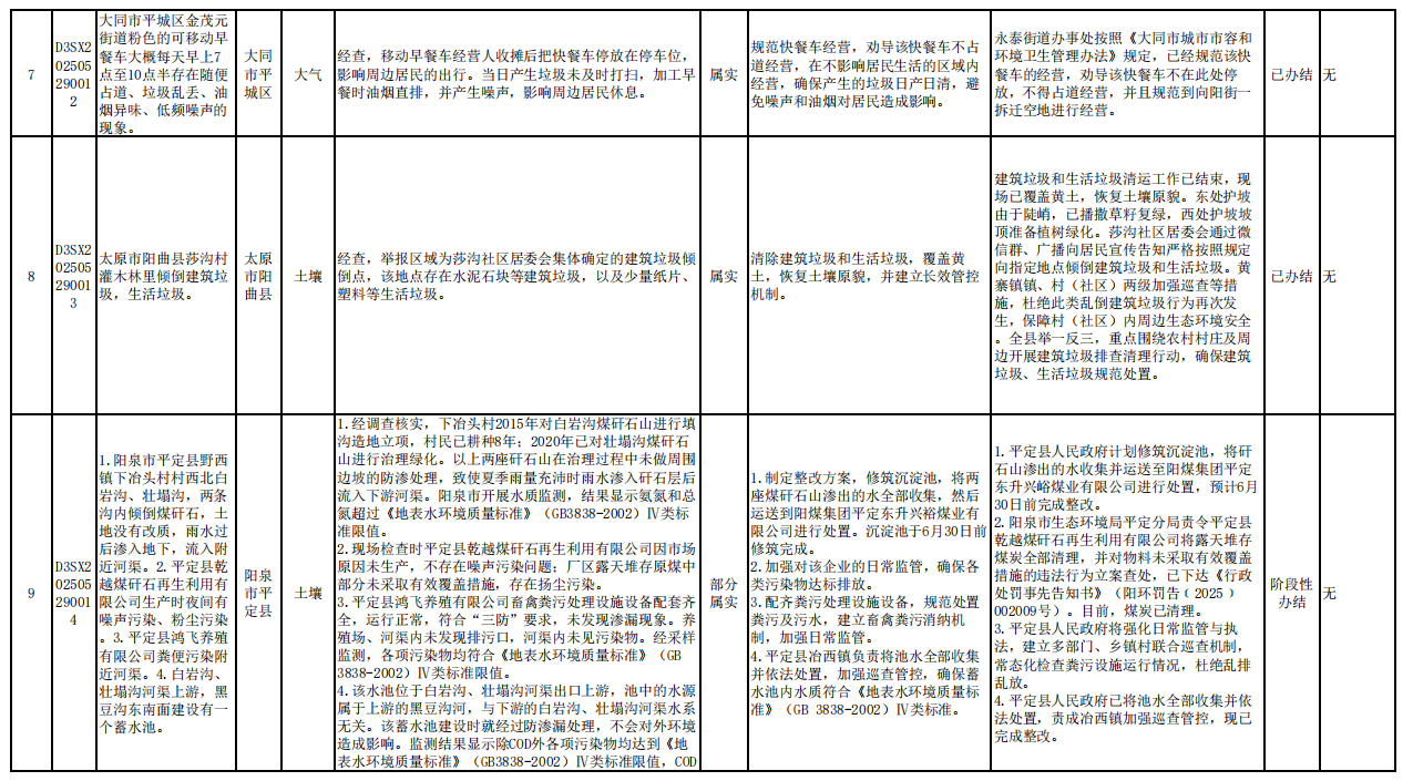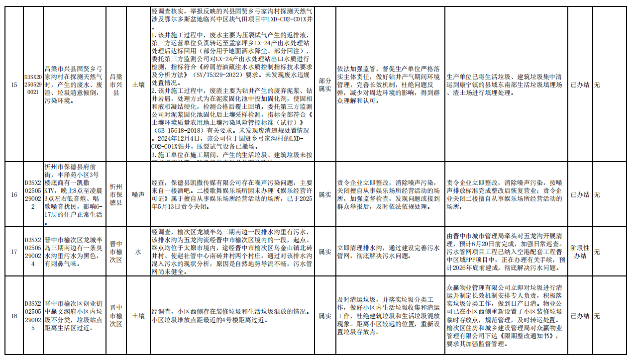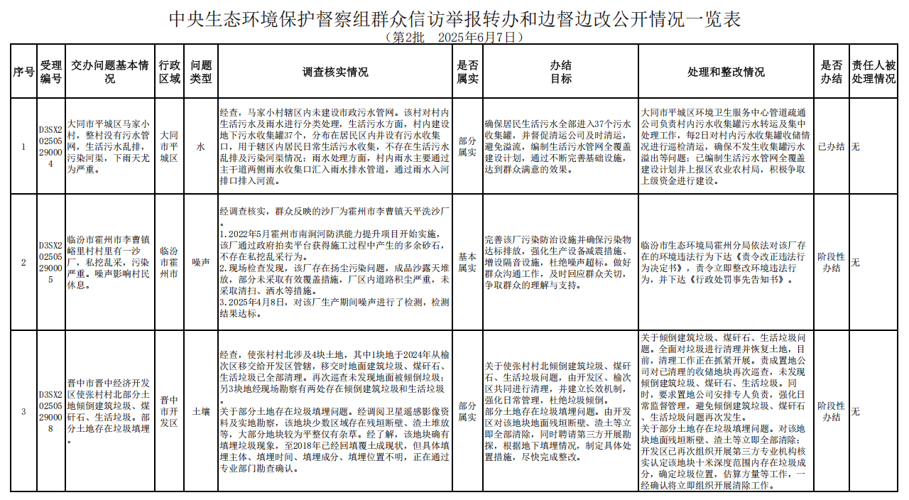 中央生态环境保护督察组群众信访举报转办和边督边改公开情况一览表(第2批 2025年6月7日)