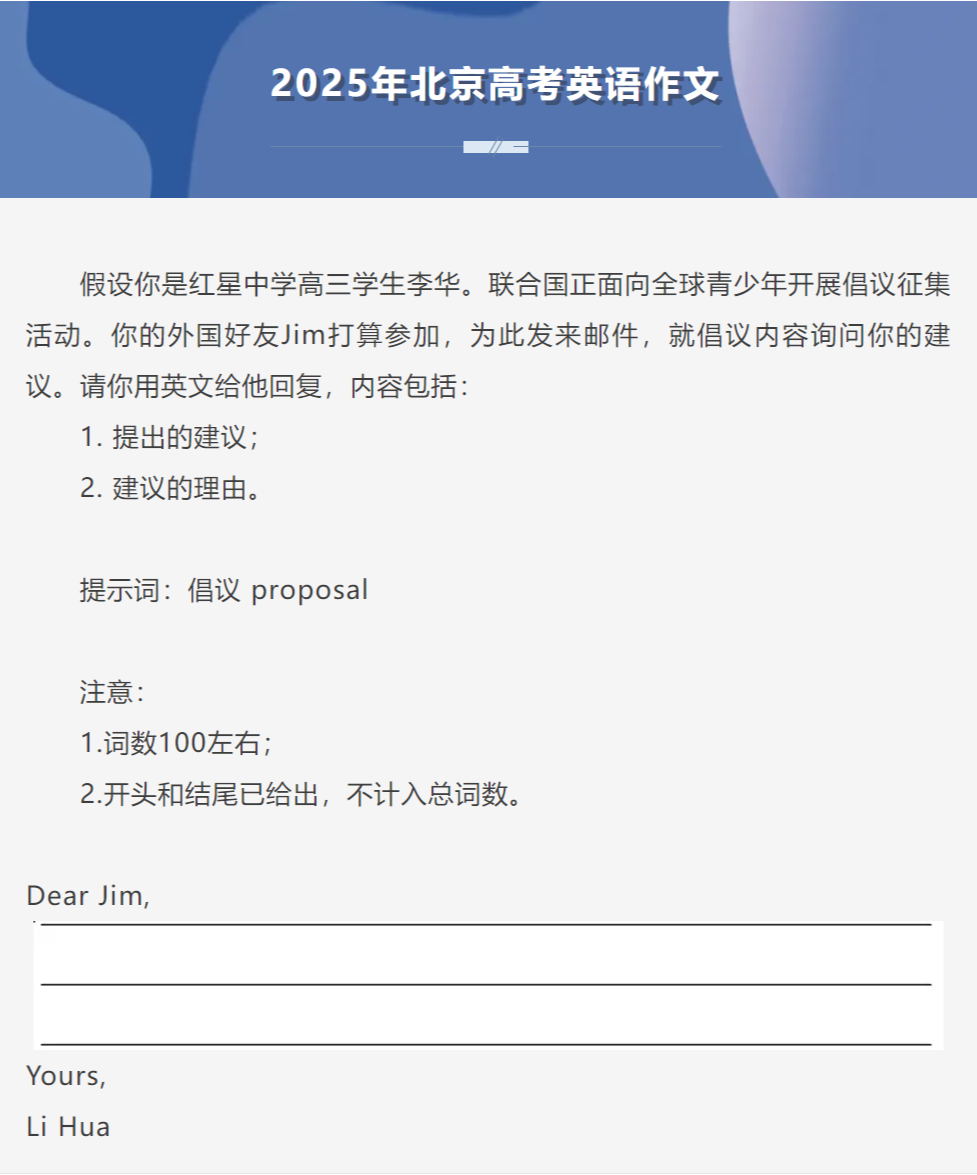 2025年北京高考的英语科目考试刚刚结束,作文试题中,李华再次成为主角↓↓