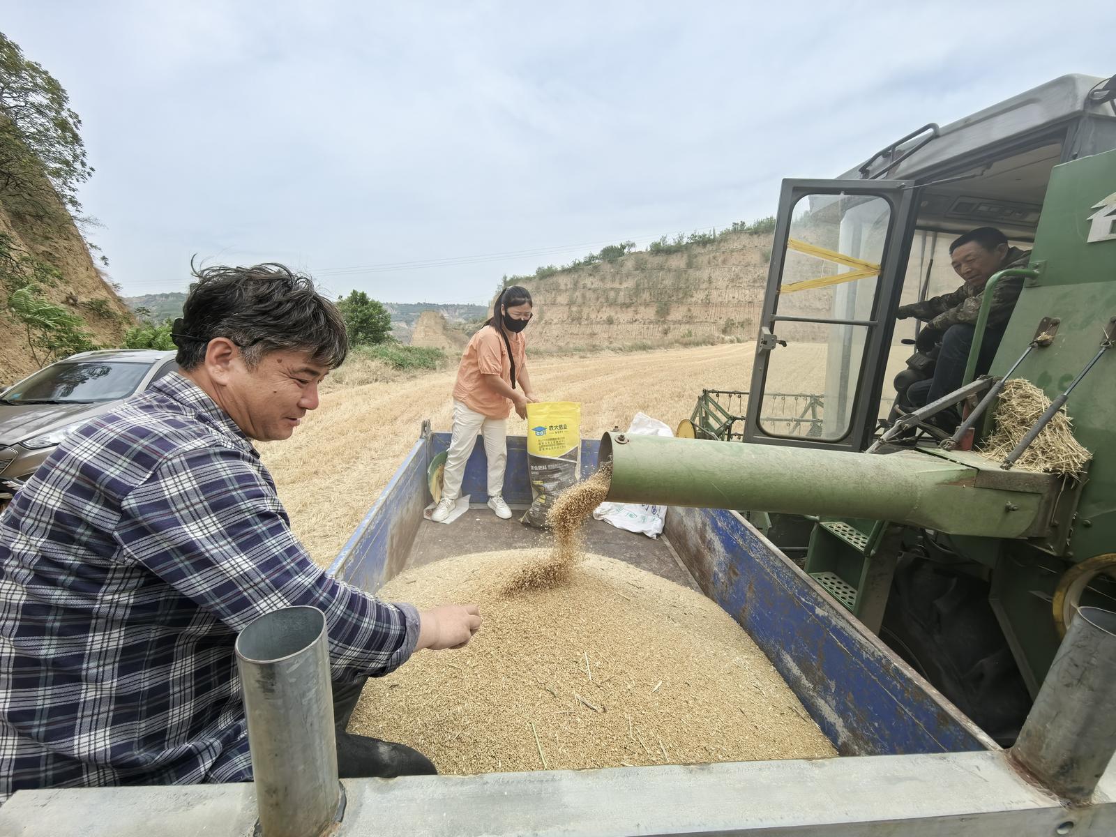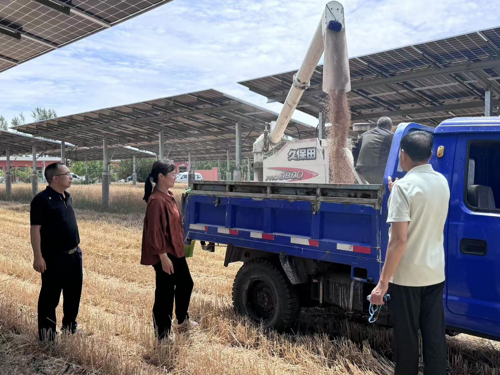 6月5日,在广通农业贸易有限公司光伏农业种植基地,验收团队以同样严格的标准开展工作,通过规范的收割、脱粒、称重等环节,对小麦产量进行精细化测算。广通公司种植的晋麦47属优质强筋小麦品种,磨制的面粉面筋含量高、韧性强,制成的面食口感劲道、麦香浓郁,在市场上极具竞争力。面对今年的严峻旱情,该公司通过灵活运用“一喷三防”技术并增加作业频次,最终实现亩产五百余斤的良好收成。