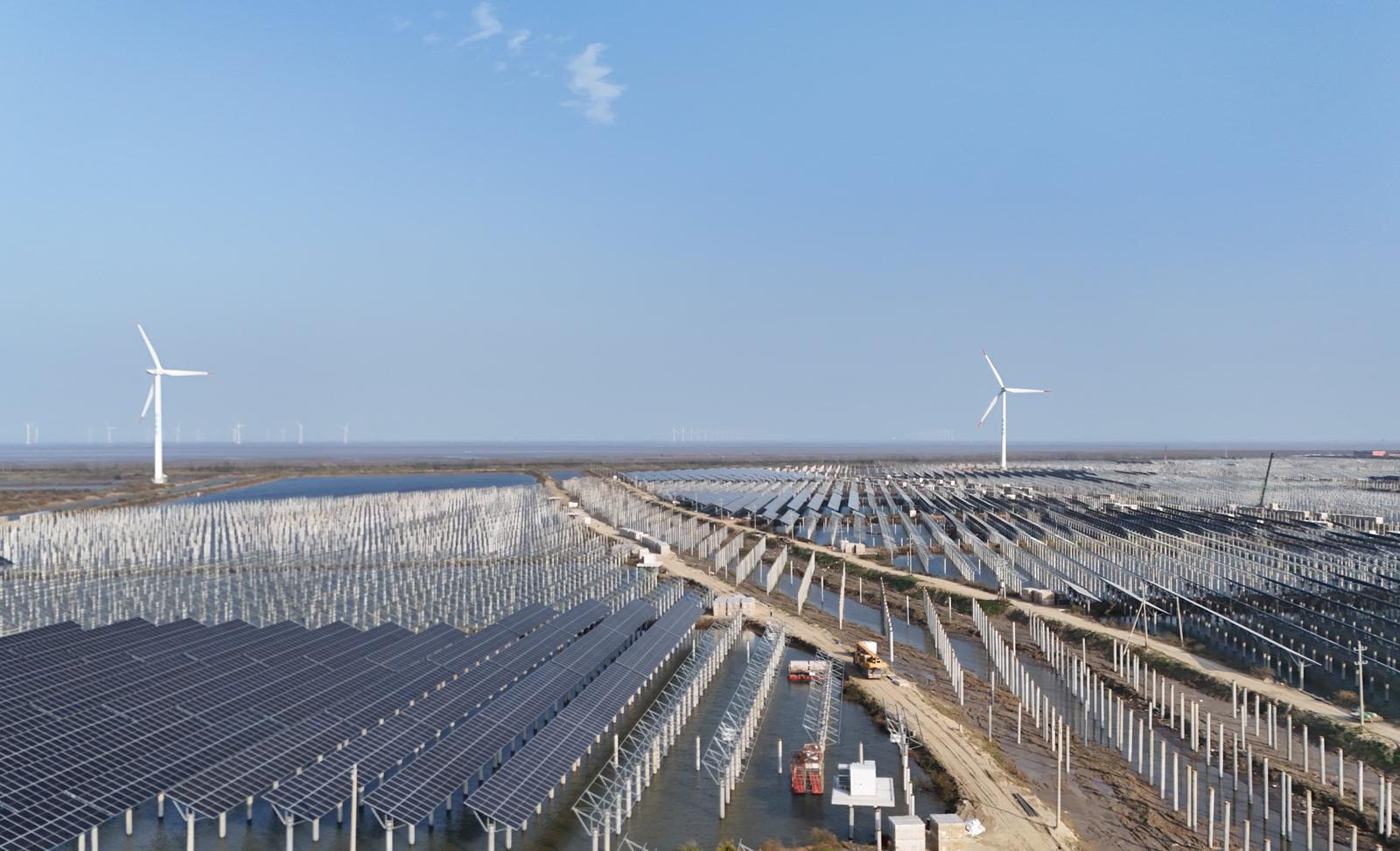 从黄土高原到碧海之滨,竞赛精神催动项目落地生花,在山东枣菏高速,全国首个全路域交能融合示范项目滕州段、鱼台段、成武段全容量并网发电,让公路变身“绿色电厂”。海南新华万宁100兆瓦农光互补项目,光伏板下牧草丰茂。东台210兆瓦渔光互补项目,阳光穿透水面照亮鱼群。