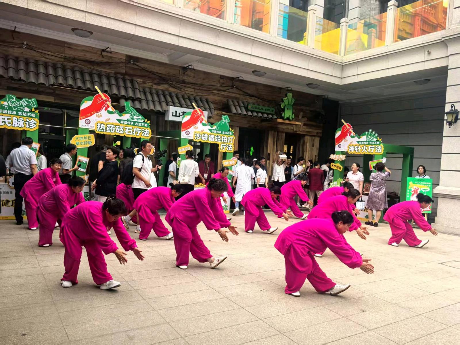 此外,游客还可以通过打卡集章进一步了解非遗养生知识,“体验+消费+传承+创新”,形成一个沉浸式养生空间。非遗不再是远观的“冷门”,借由市集丰富的功能演化,成为潮流青年的“时髦单品”选择。本次市集,省文旅厅还策划了太原莲花落、八段锦、临县三弦、晋剧的街区快闪,游客可以现场向传承人学习八段锦。