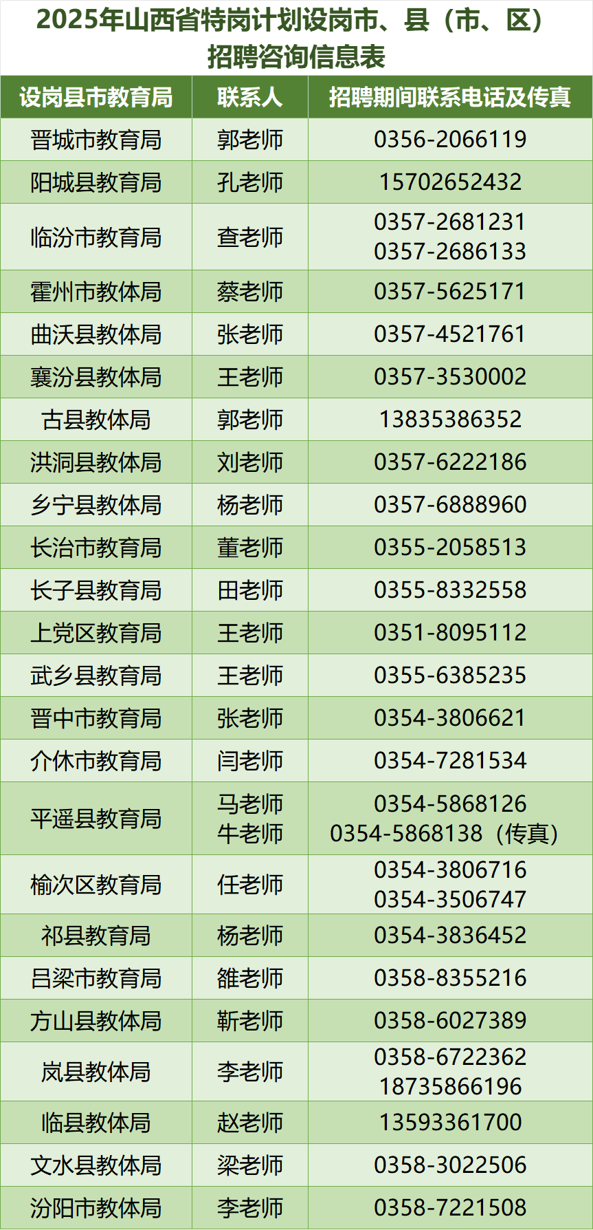 2.实施特岗计划的县(市、区),按照《中共山西省委组织部 山西省人力资源和社会保障厅关于进一步做好艰苦边远地区事业单位公开招聘工作的通知》,可拿出一定数量的岗位面向本县户籍人员或生源招聘,具体数量由设岗县确定。