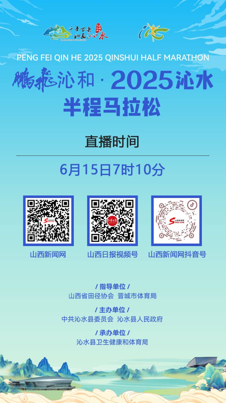 6月15日7时30分,鹏飞沁和·2025沁水半程马拉松将在沁水综合展示馆鸣枪起跑。这是沁水举办的第七届半程马拉松赛事,是山西省内唯一常态化举办的六月马拉松赛事。从7时10分开始,山西新闻网、山西日报相关新媒体平台对赛事进行全程直播。