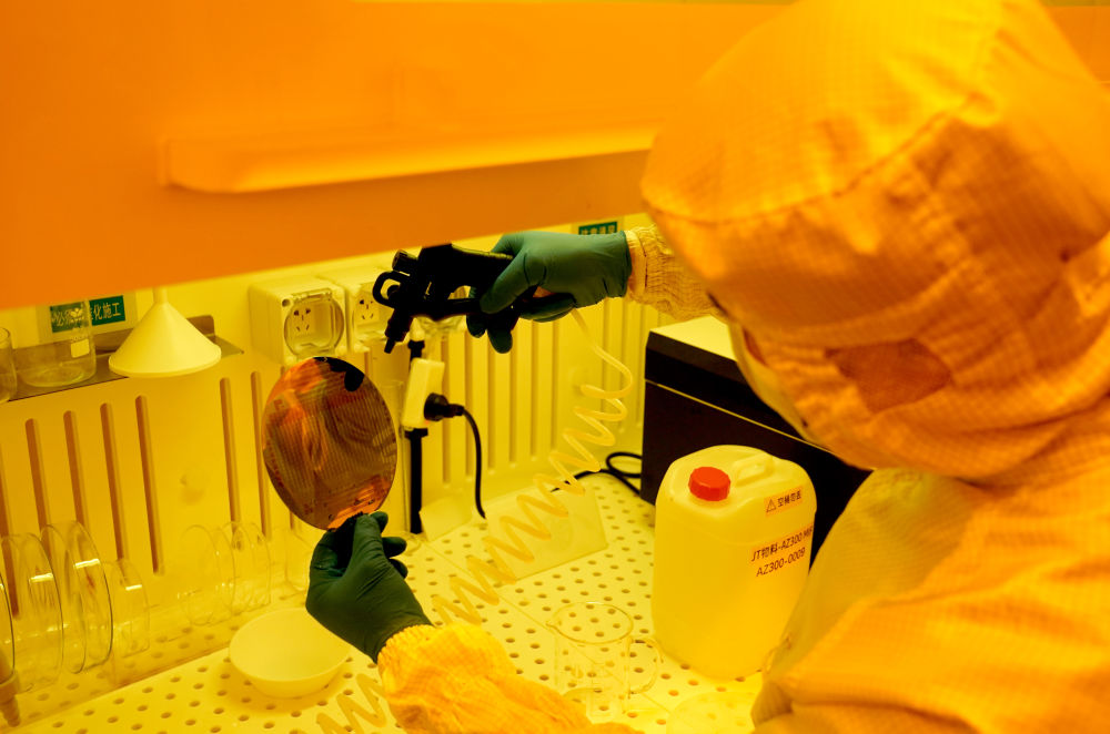 科研人员在中国科学院脑智卓越中心的微纳电子加工平台实验室内工作。新华社记者方喆 摄