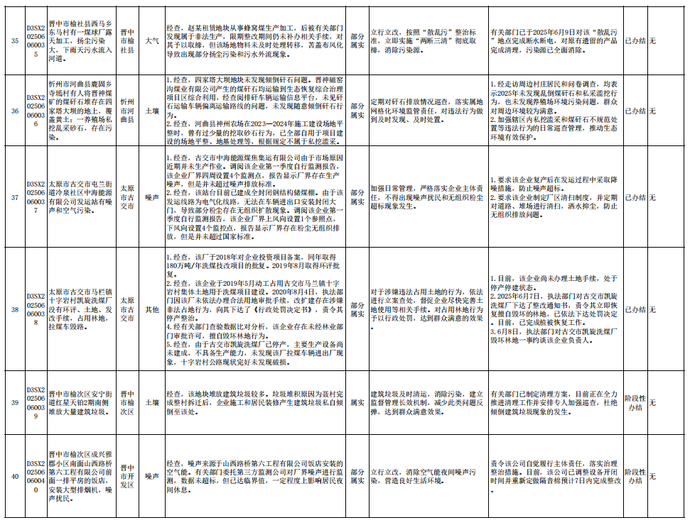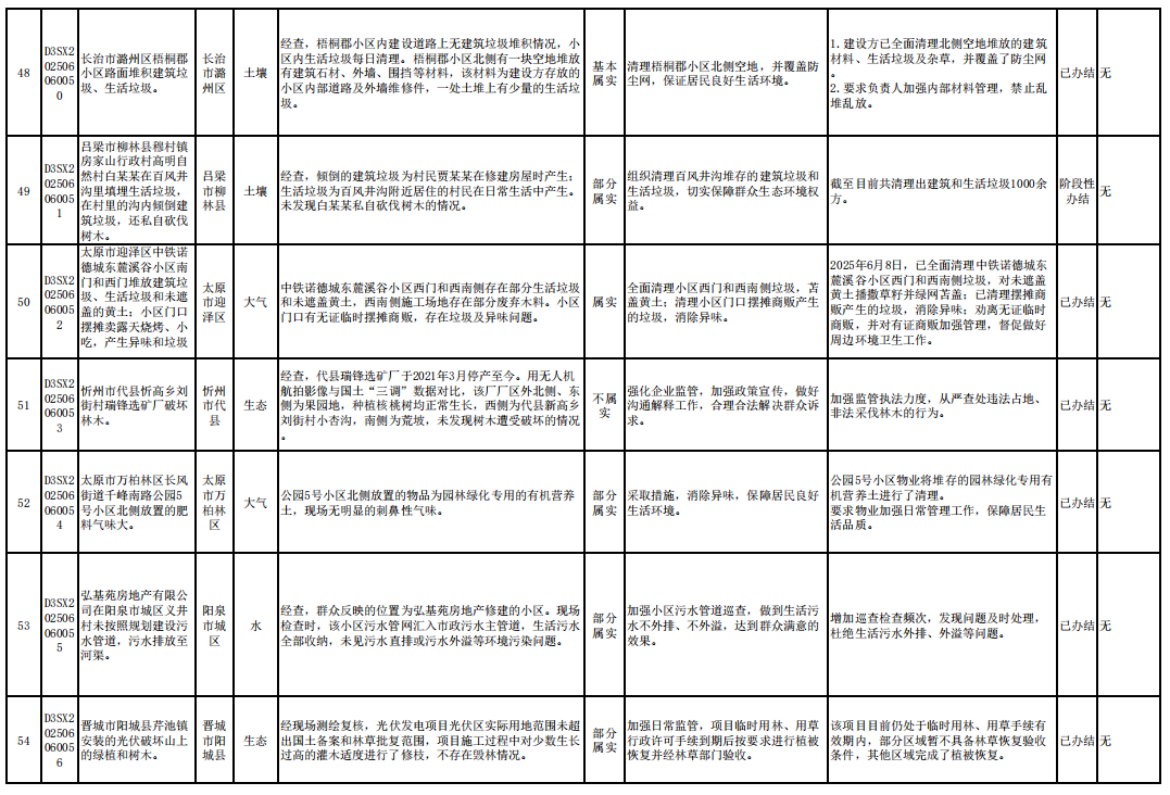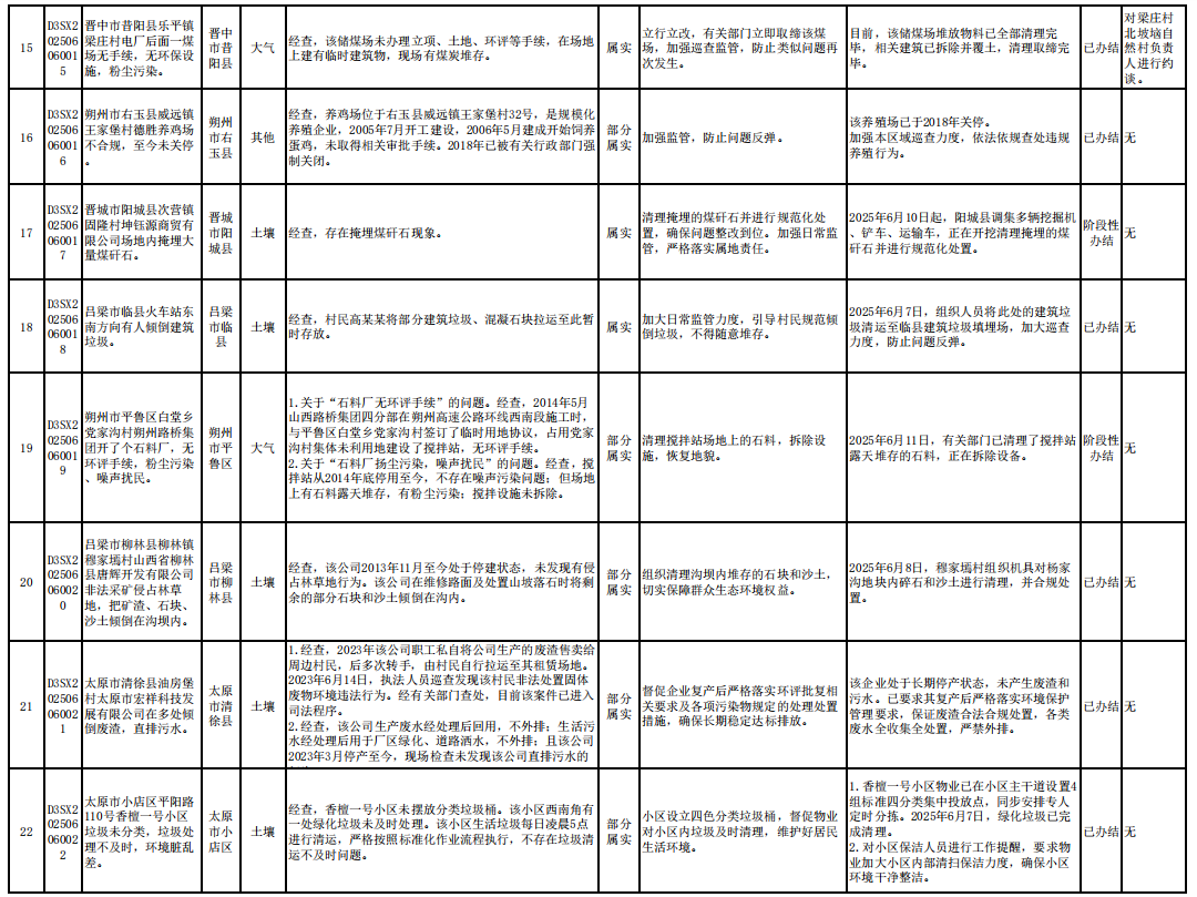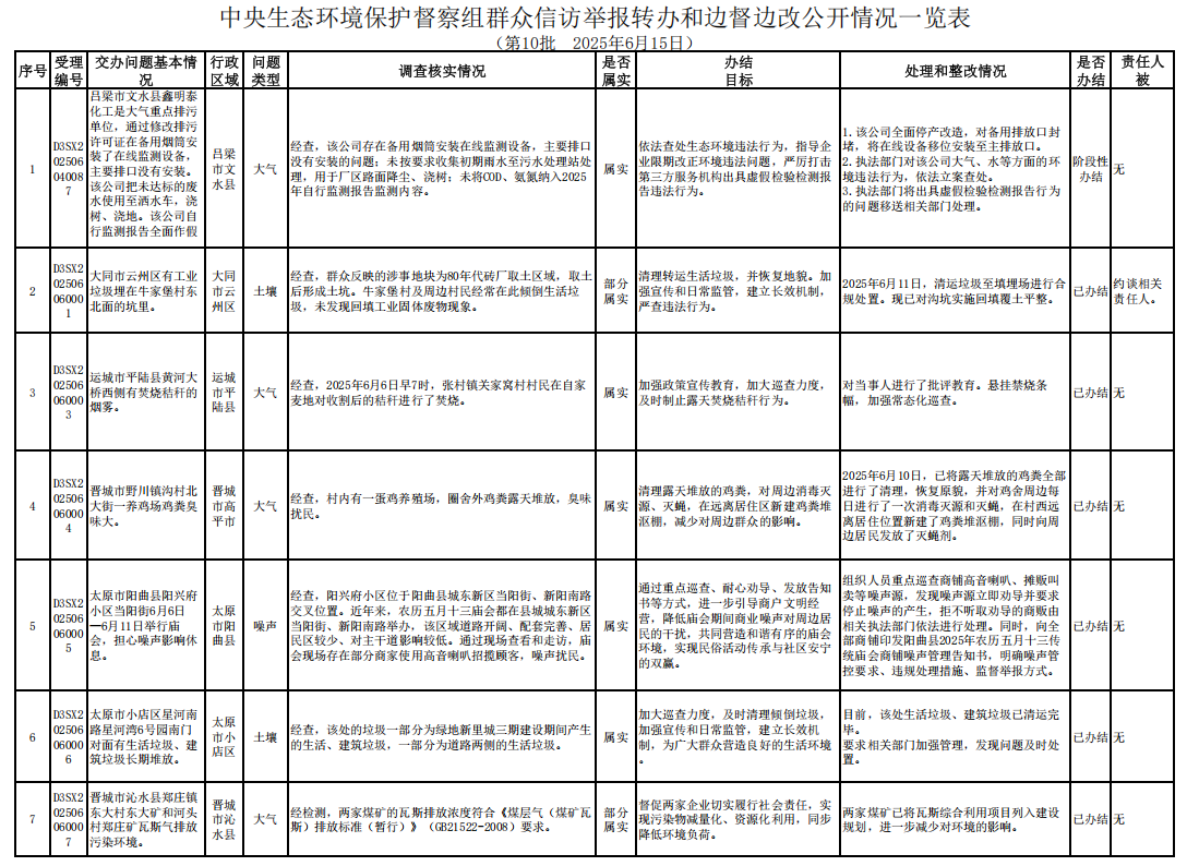 中央生态环境保护督察组群众信访举报转办和边督边改公开情况一览表(第10批 2025年6月15日)