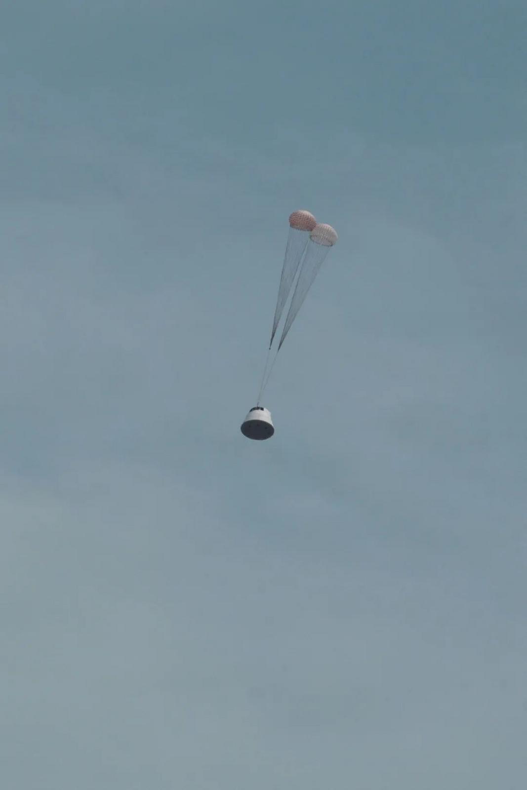 12时30分,下达点火指令,梦舟载人飞船逃逸发动机成功点火,船塔组合体在固体发动机推动下腾空而起,约20秒后达到预定高度,返回舱与逃逸塔实现安全分离,降落伞顺利展开。12时32分,返回舱使用气囊缓冲方式安全着陆于试验落区预定区域,试验取得圆满成功。