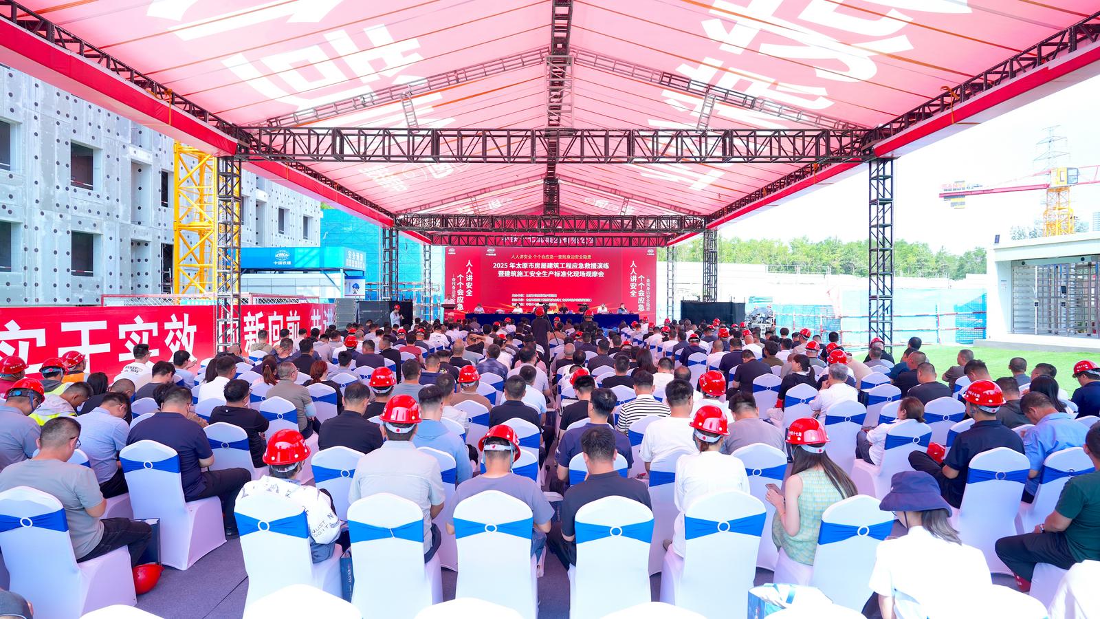 6月17日,由太原市住房和城乡建设局主办、太原市建设工程质量安全站(太原市城乡建设档案馆)承办、中铁十七局协办的“太原市房屋建筑工程应急救援演练暨建筑施工安全生产标准化现场观摩会”在中国铁建·国樾府项目举办。活动以“人人讲安全、个个会应急——查找身边安全隐患”为主题,吸引了全市住建部门、建设单位、监理单位、建筑企业及媒体代表共350余人参与。