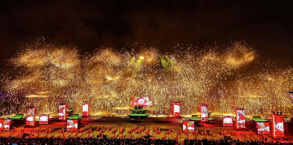 夜幕降临,华灯初上,一位位打铁匠人舞动着1600多℃的高温铁水,千朵万朵铁花瞬间在空中绽放,犹如繁星点点,呈现出“火树银花不夜天”的盛景。