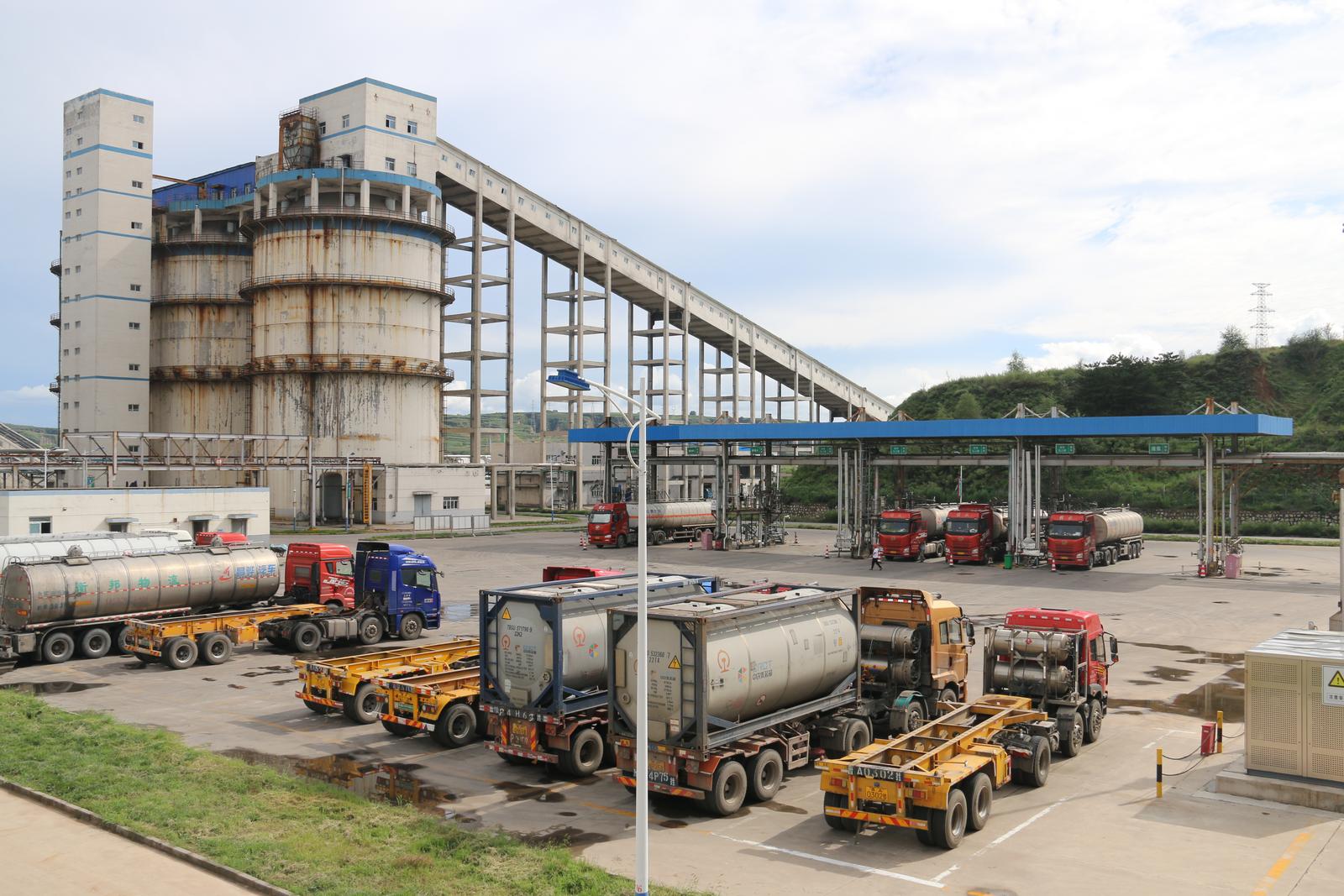在公司装车现场,一辆辆槽罐运输车整齐排列,有序等待装货。销售员聂小鹏紧跟车间装车工,手持取样瓶,一次次认真取样。