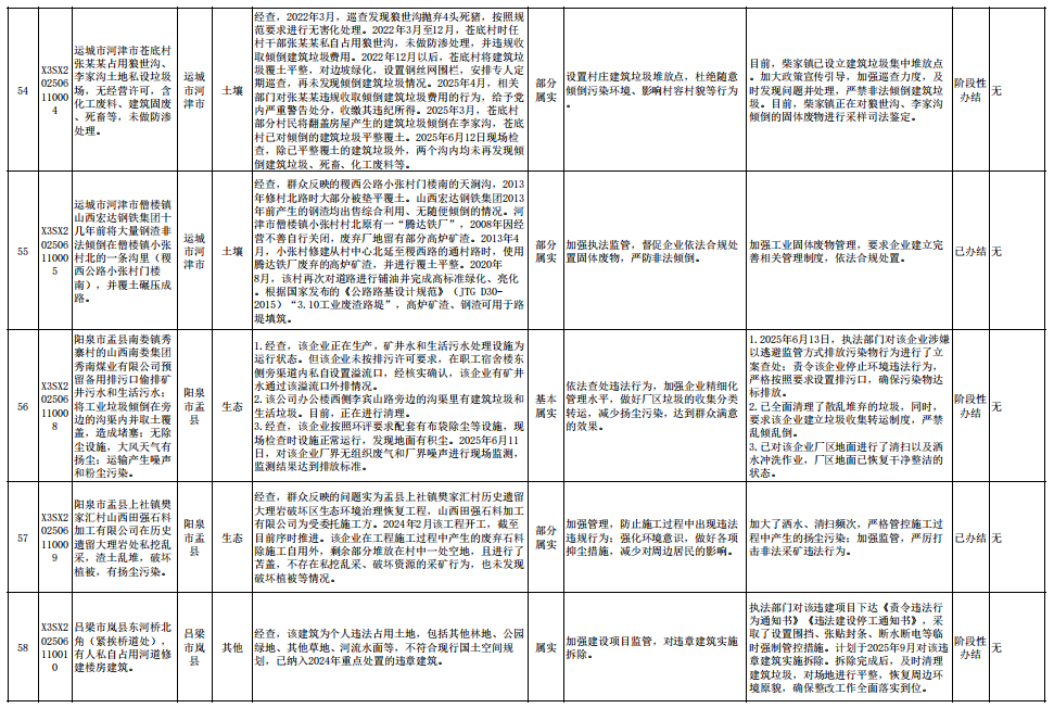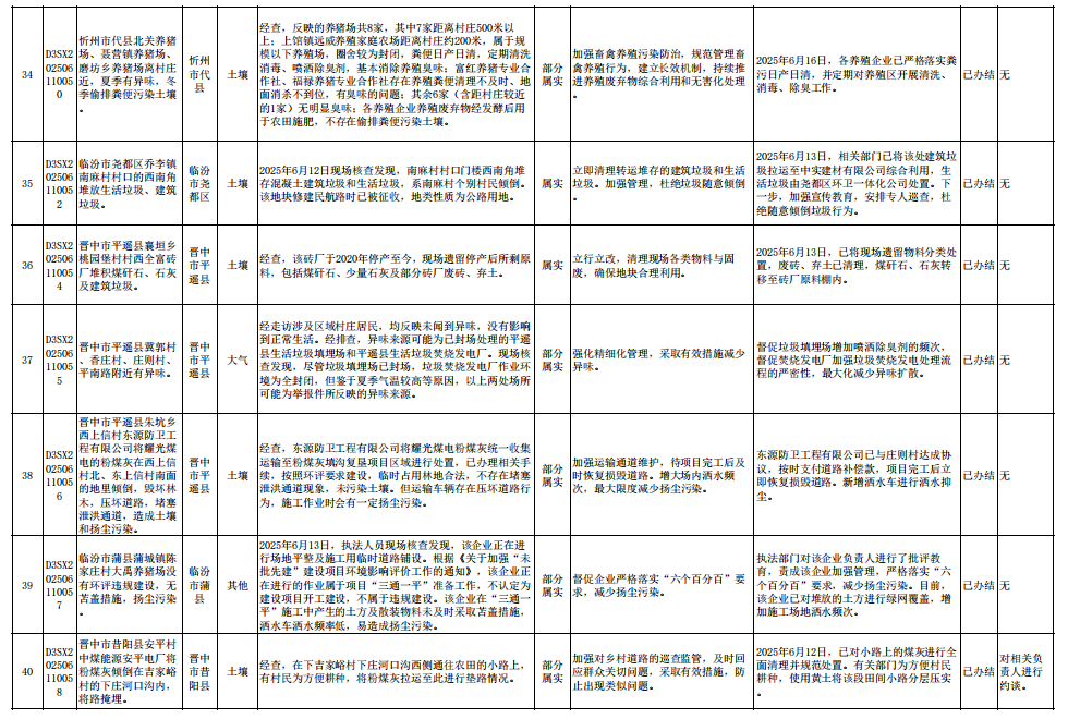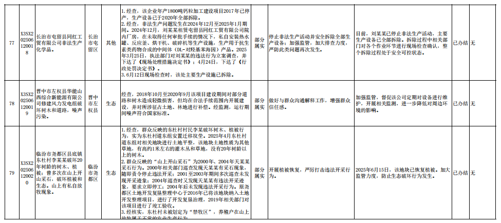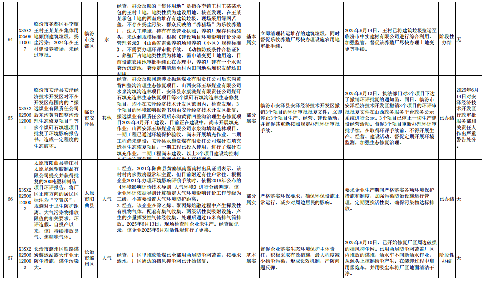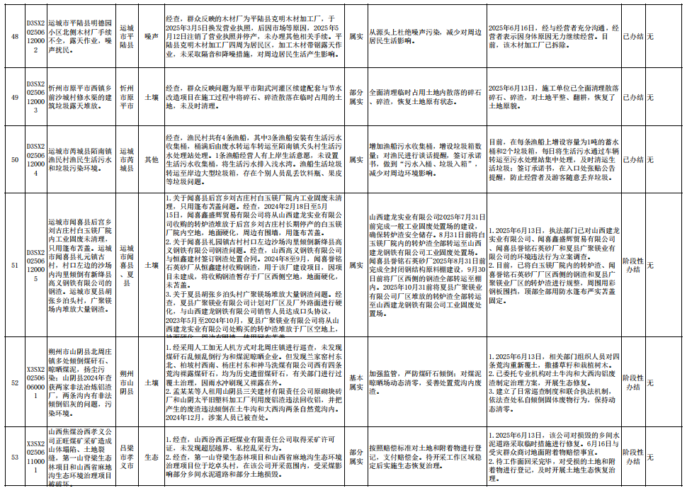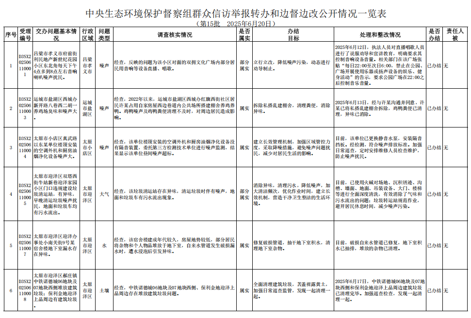 中央生态环境保护督察组群众信访举报转办和边督边改公开情况一览表(第15批 2025年6月20日)